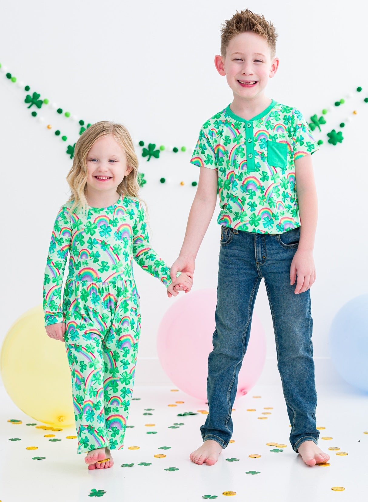 Crafted with a luxurious blend of bamboo-derived viscose and spandex, this jumpsuit guarantees unmatched softness and comfort. It is both adorable and fashion-forward, making it a staple in your little one's wardrobe. Elevate their style with this essential piece, radiating sophistication and timeless design!