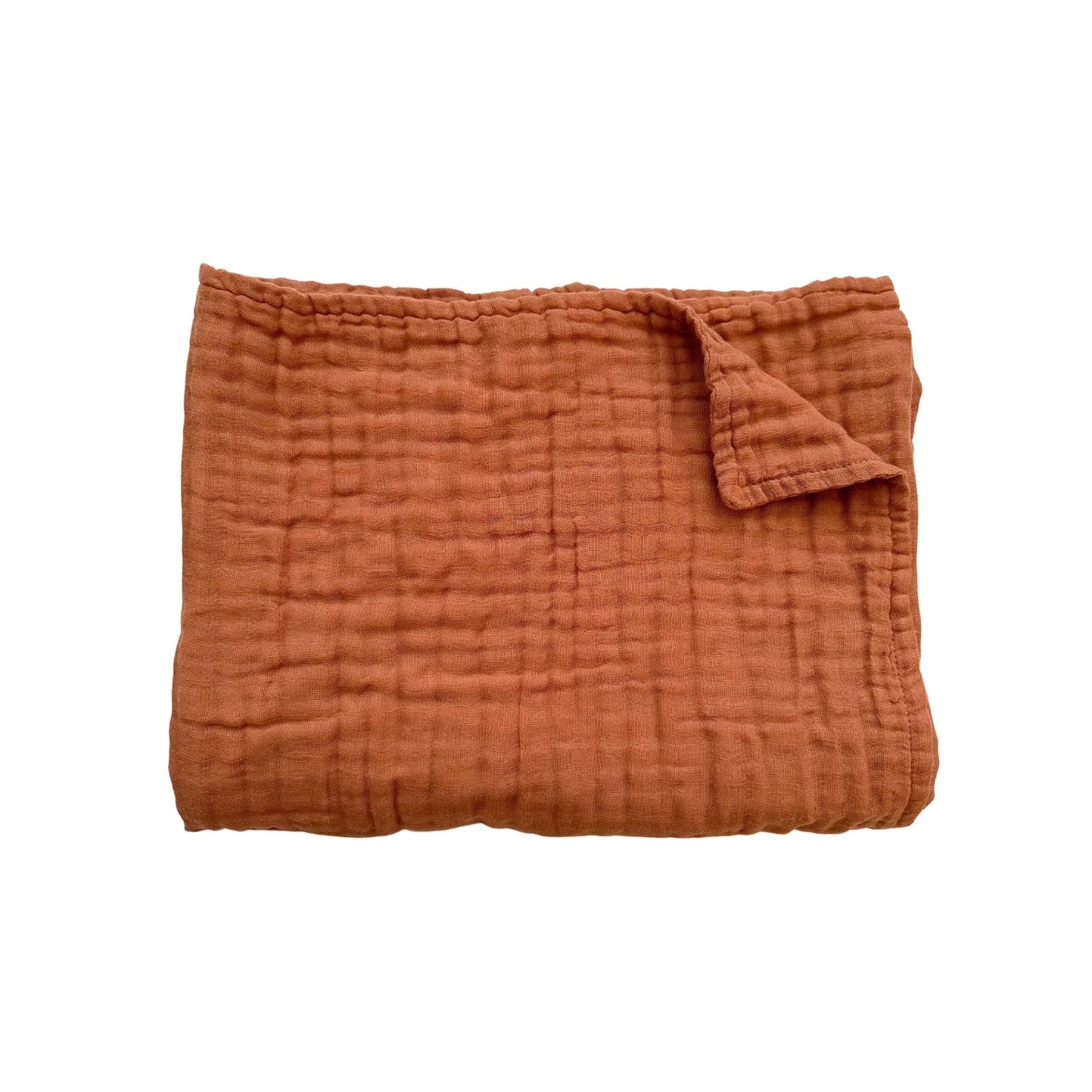 Introducing our Copper Muslin quilt blanket featuring 6 layers of soft 100% Cotton muslin. A true essential for both comfort and style in your baby's world. Crafted with meticulous care, this quilt blanket features six layers of lightweight and breathable muslin cotton that gently cocoons your little one in soothing softness.