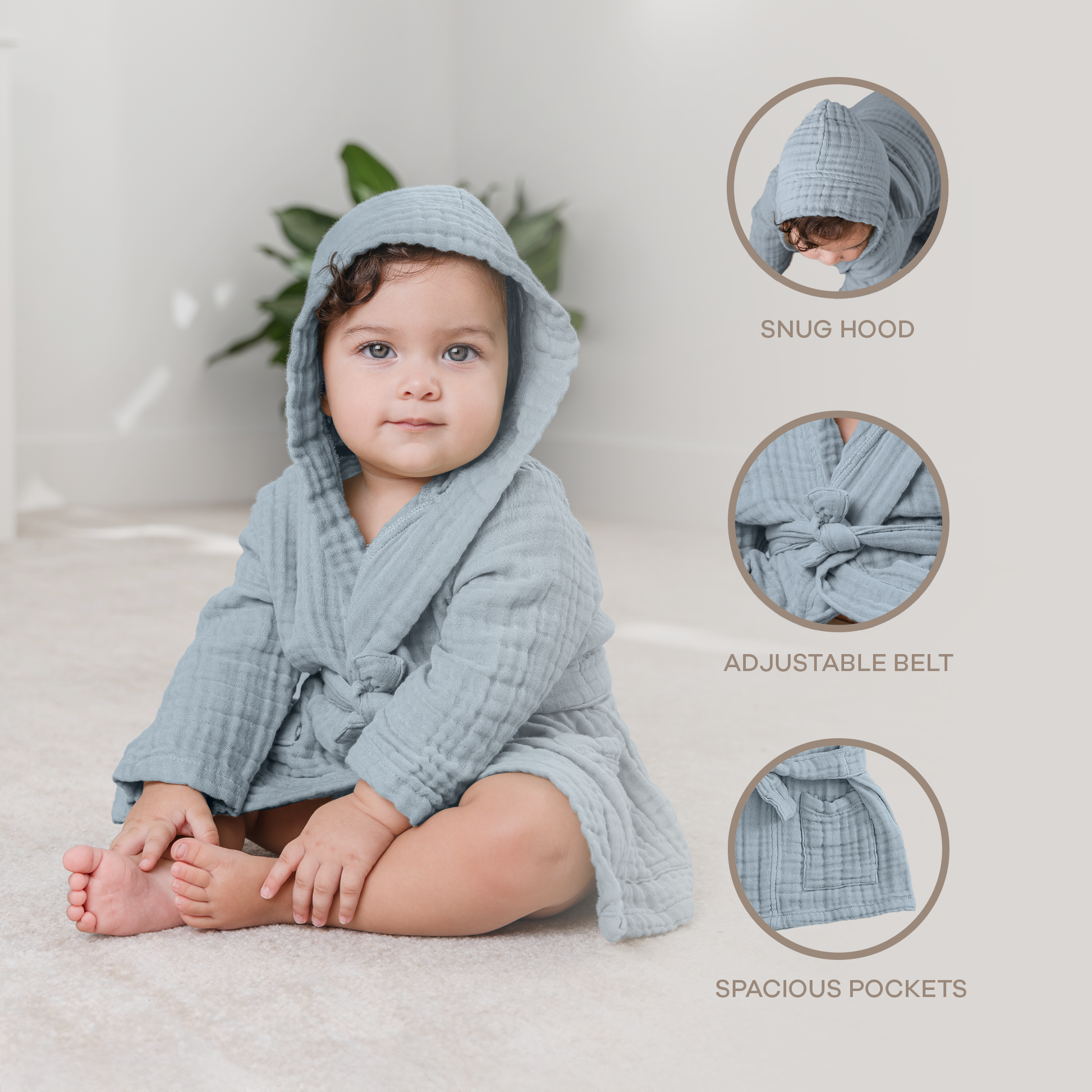 Breathable Muslin Fabric: Made from lightweight muslin, this light robe keeps kids comfortable year-round, offering just the right mix of coziness and breathability.