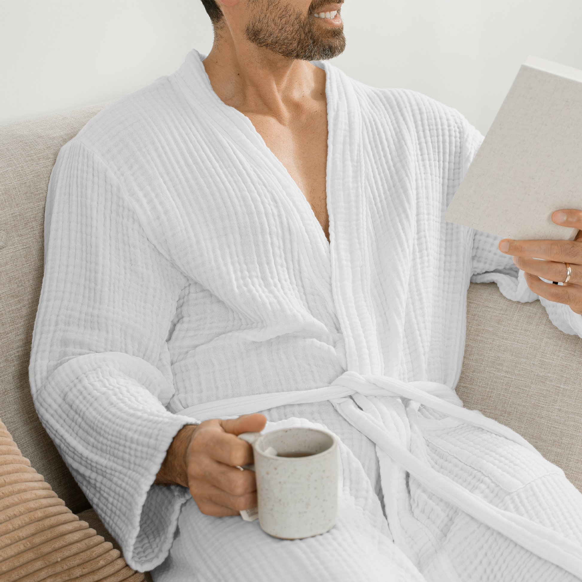 The multi-layer muslin absorbs moisture efficiently, helping you dry off with ease without feeling weighed down. Lightweight yet cozy, this bathrobe men provides year-round comfort, offering warmth without overheating. The breathable fabric and thoughtful details make it versatile for any season, so you can enjoy it all year long.