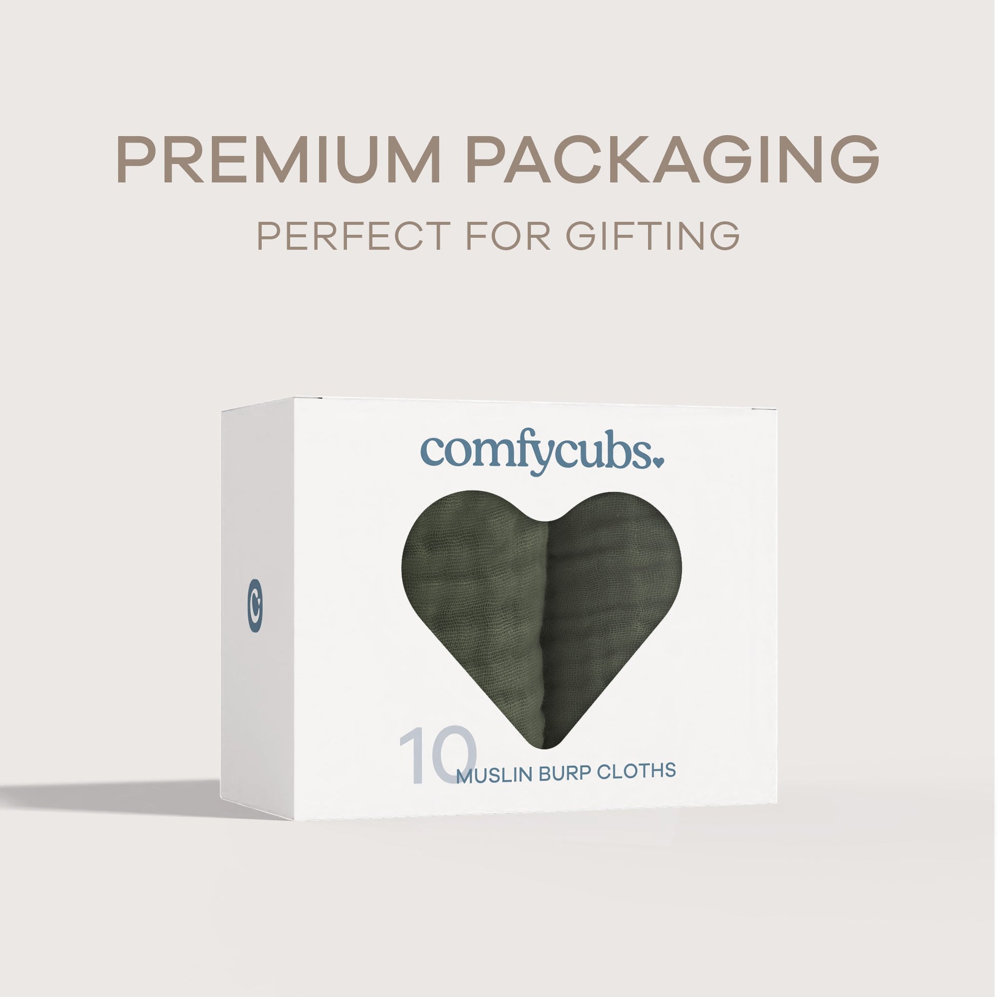 Beautiful Gift Packaging: Our Comfy Cubs muslin burp cloths come in stunning gift packaging, making them super giftable and the perfect newborn or baby shower gift for new parents. There's no need to gift wrap, just shop and gift or add them to the baby registry. They are perfect for both girls and boys.