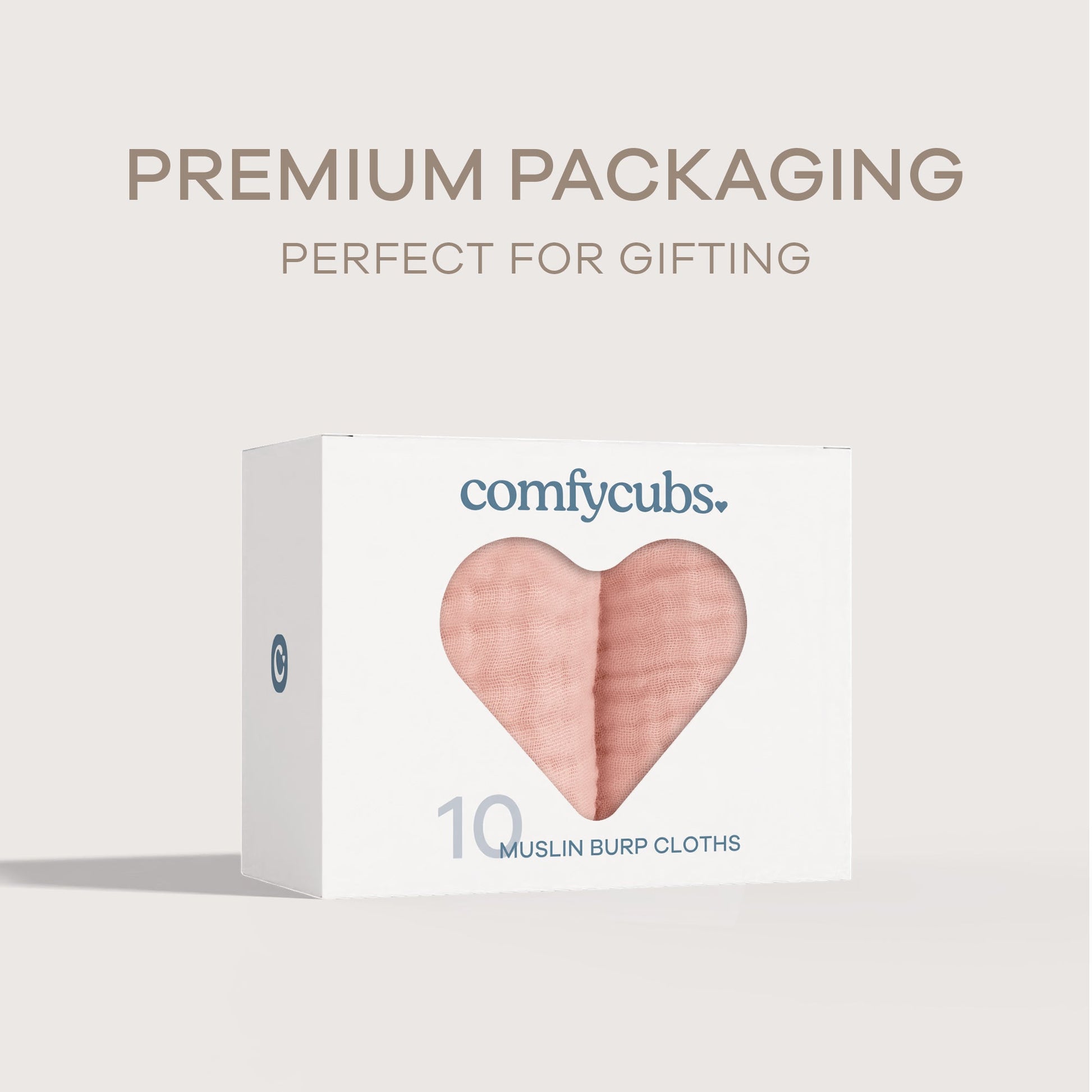 Beautiful Gift Packaging: Our Comfy Cubs muslin burp cloths come in stunning gift packaging, making them super giftable and the perfect newborn or baby shower gift for new parents. There's no need to gift wrap, just shop and gift or add them to the baby registry. They are perfect for both girls and boys.