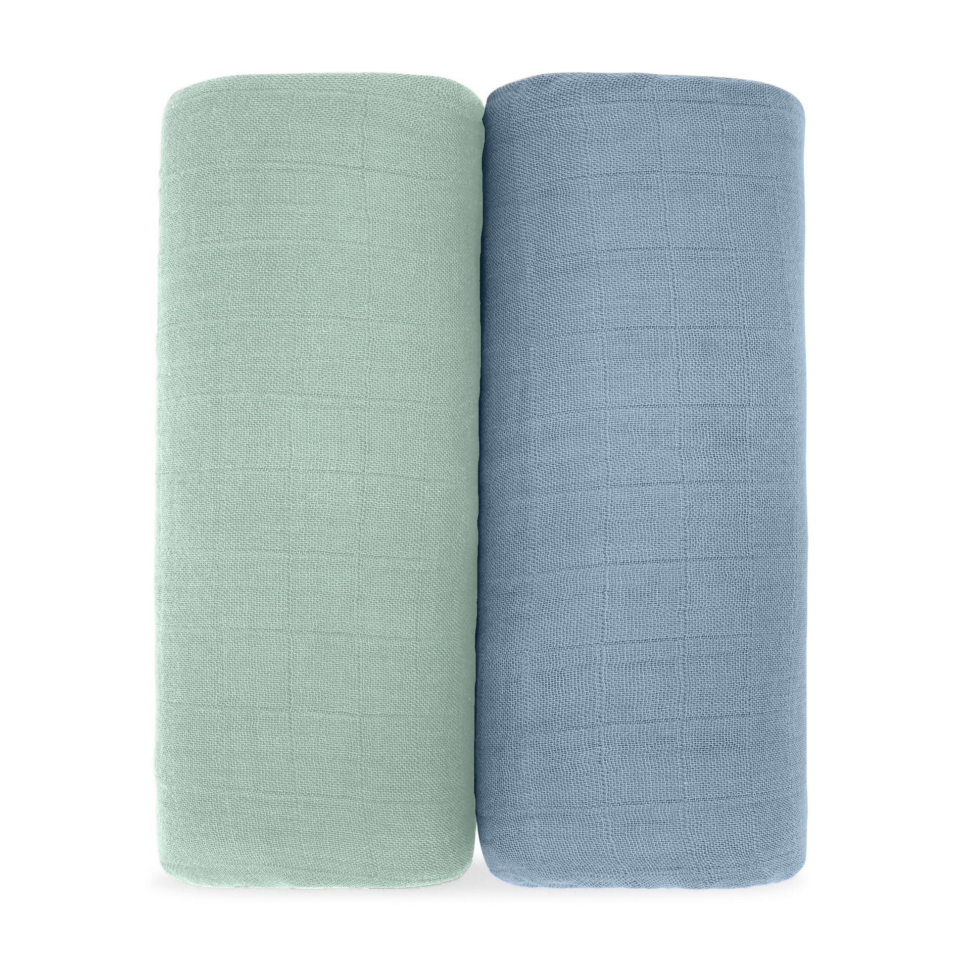 Muslin Swaddle Blanket in Pacific Blue & Fern, 2 Pack