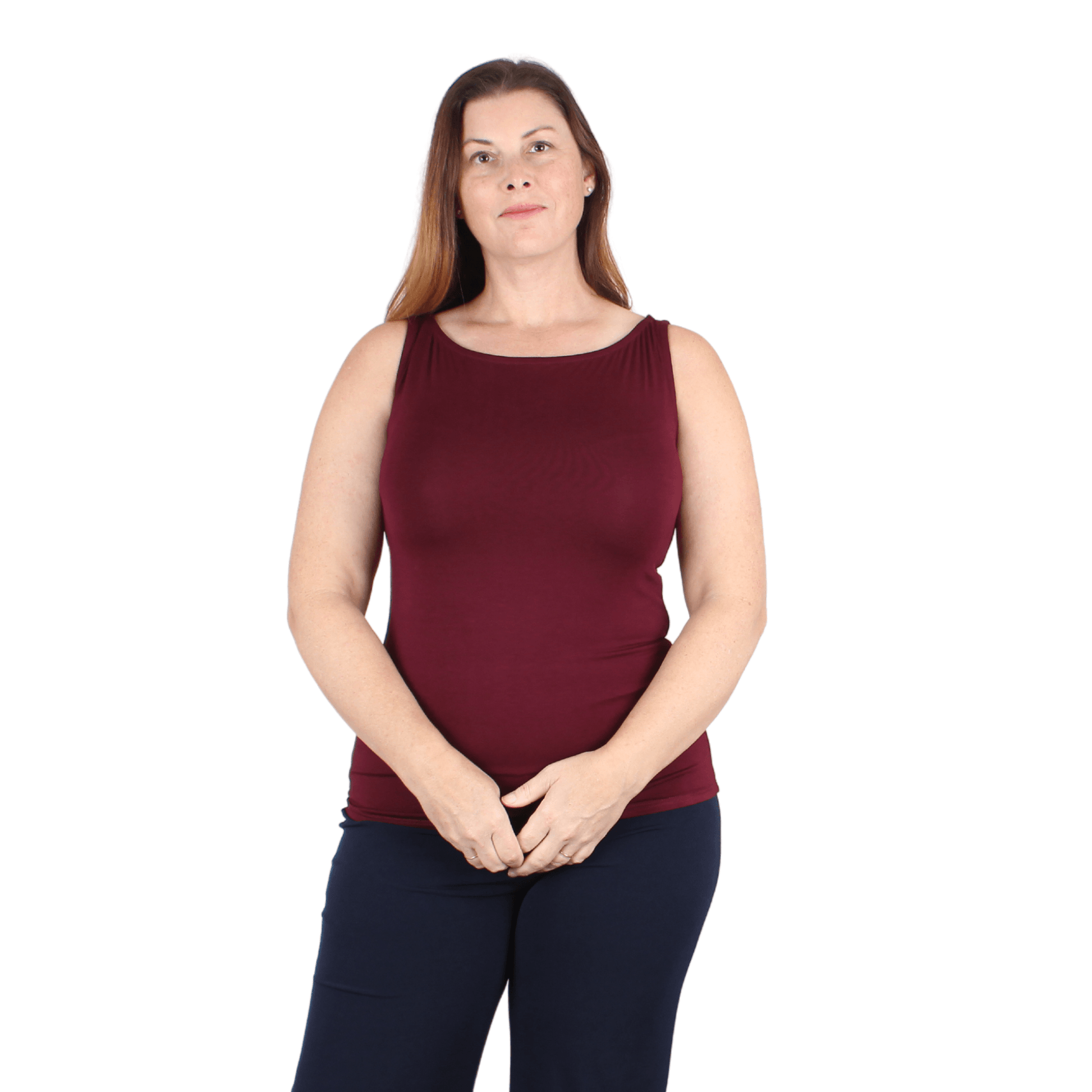 Natural Compact Boat Neck Tank | Burgundy
