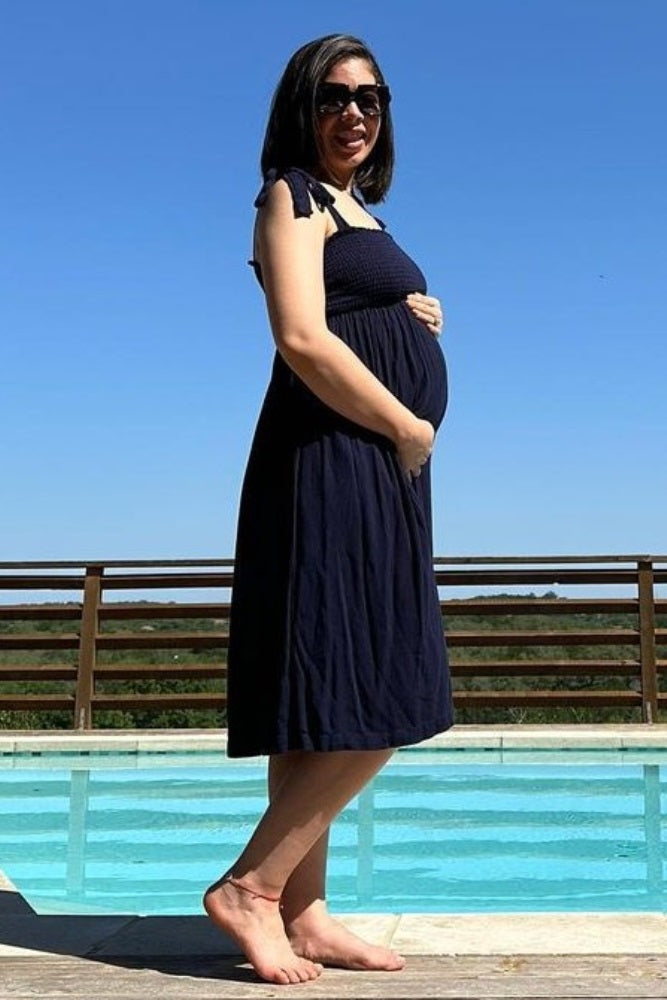 Effortlessly chic, our Navy Blue Smocked Tie Strap Maternity Midi Dress is made for moms-to-be who crave comfort and style. The smocked bodice gently expands with your changing shape, offering a flattering fit throughout pregnancy and beyond. Adjustable tie straps add a playful, feminine touch, while the flowy midi skirt gives you room to move. Crafted from soft, breathable fabric, this dress keeps you cool at any occasion—baby showers, brunch, or a casual day out. Pair with your favorite sandals or sneakers for a look that’s timeless and easy. Your new maternity wardrobe staple awaits!