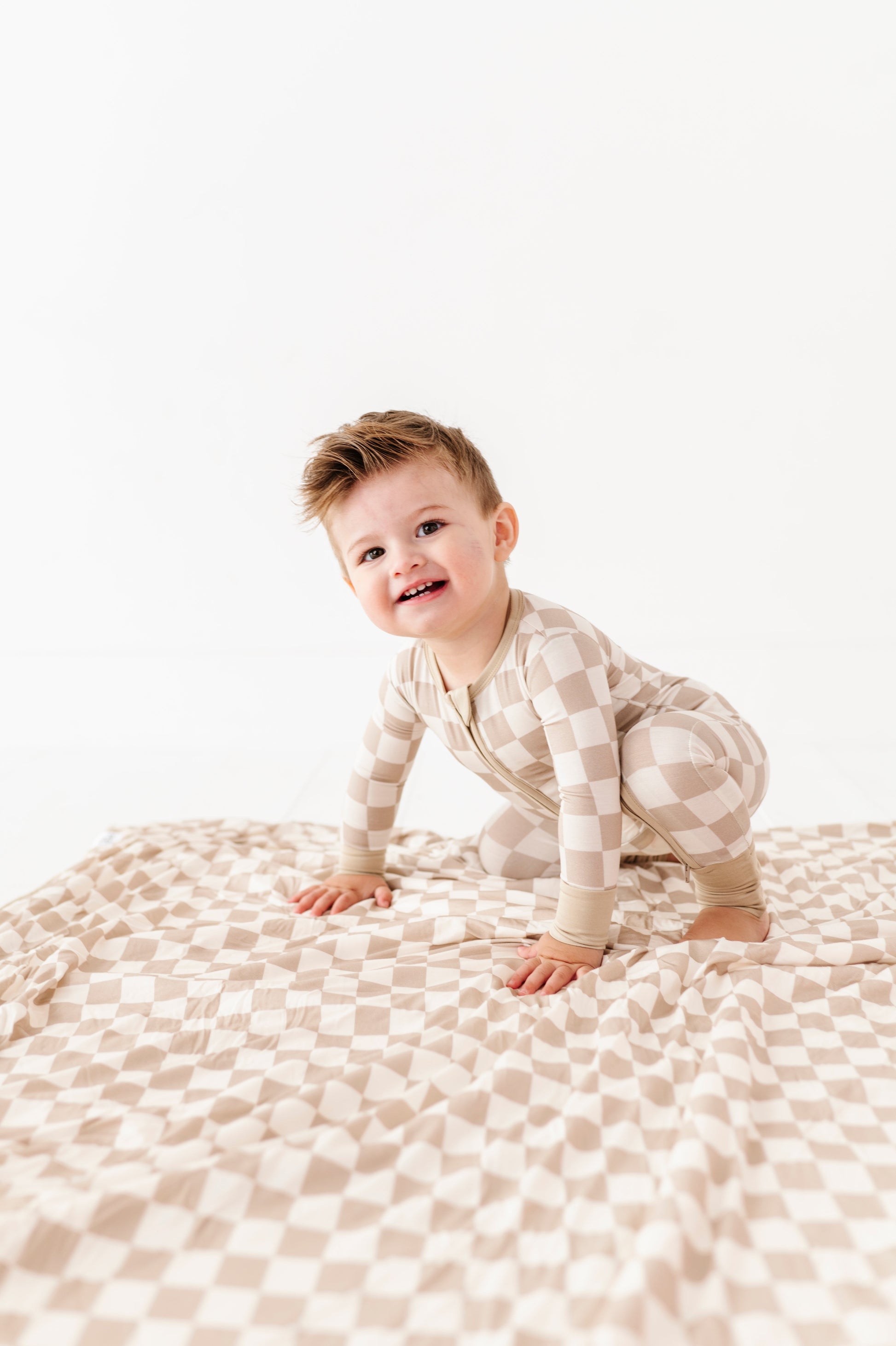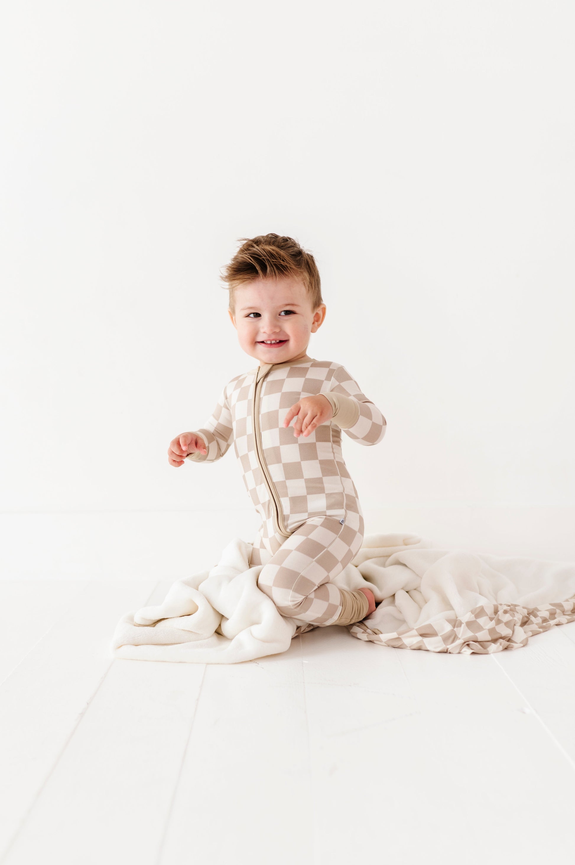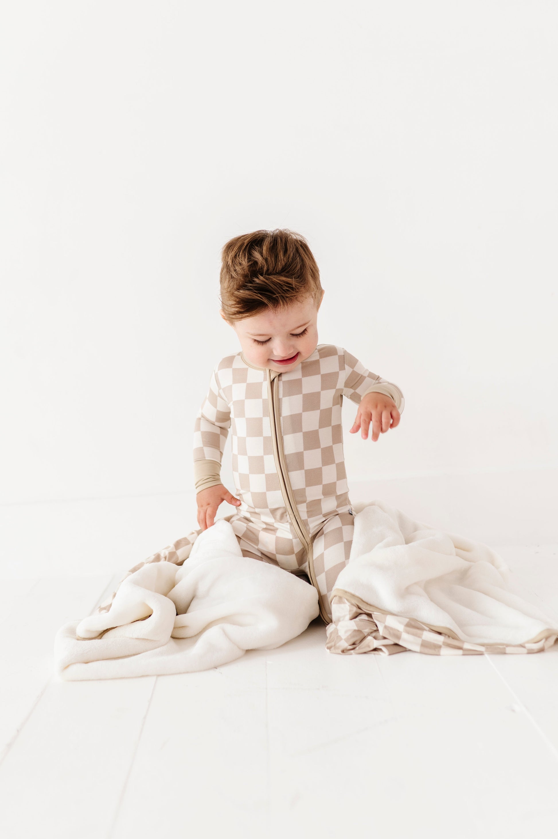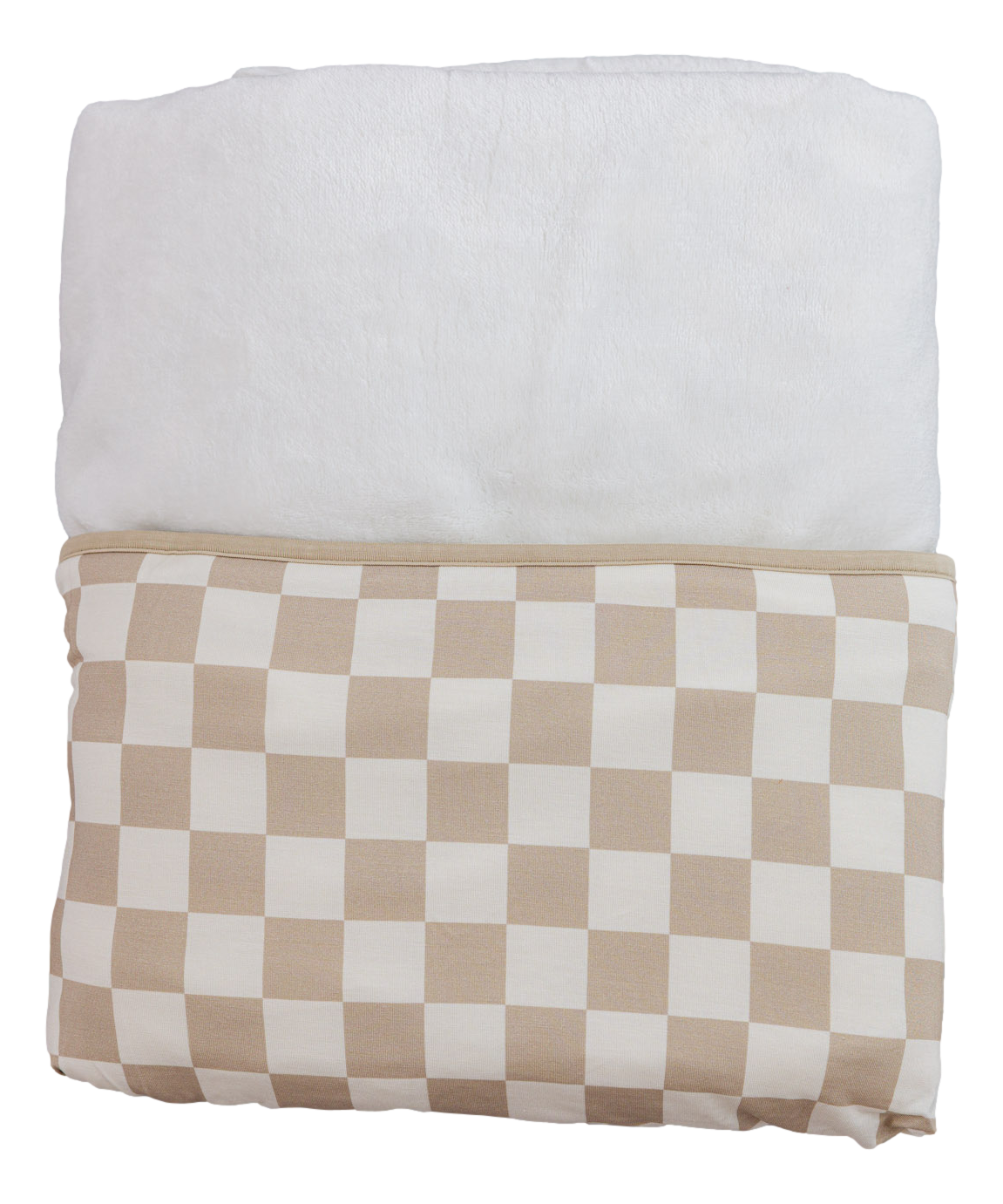 Wrap your crew in cozy with our Oat Check Plush Blanket. One side is buttery-soft bamboo viscose, the other is ultra-plush polyester—warmth without the weight. The neutral oat-and-cream check slips into any room and every season, perfect for couch cuddles, stroller rides, car naps, or movie nights. Gentle on sensitive skin, easy care, snuggle approved.