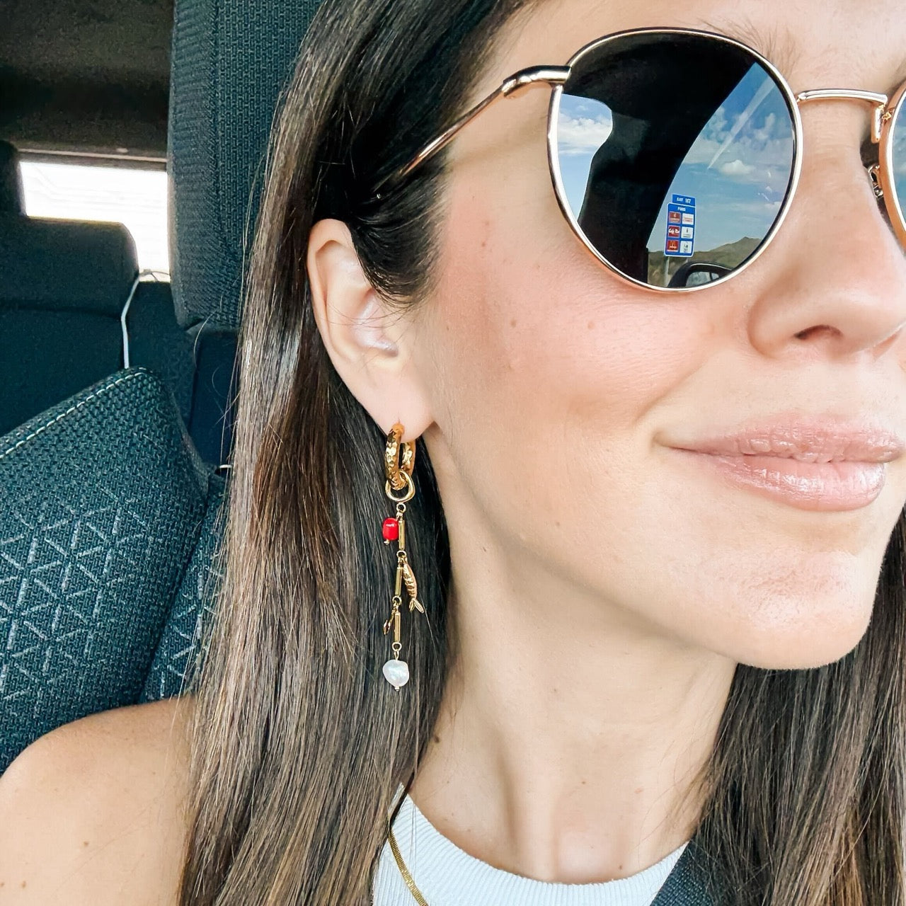 This charm is styled on our Chunky Rounded Huggies (Gold).