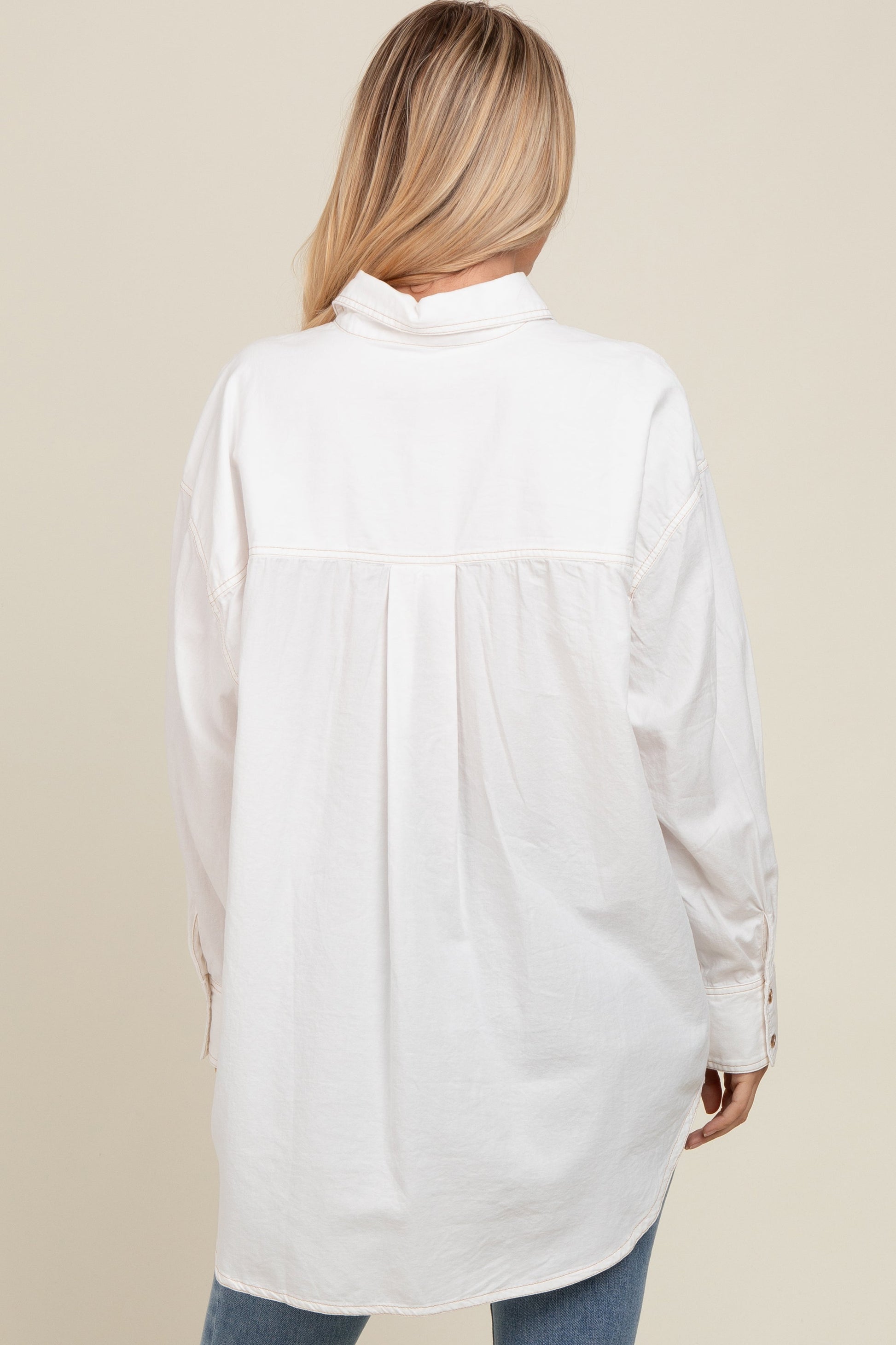 Elevate your casual wardrobe with this Off White Chambray Button Down Top. Featuring a relaxed fit and soft chambray fabric, this versatile shirt offers all-day comfort with a laid-back vibe. Classic button closures and a single chest pocket add timeless detail, while the slightly oversized silhouette pairs effortlessly with your favorite jeans or leggings. Perfect for layering or wearing on its own, this top is a must-have staple for any season. Lightweight yet durable, it delivers easy style with every wear. Refresh your essentials with this chic and cozy chambray button-down today!