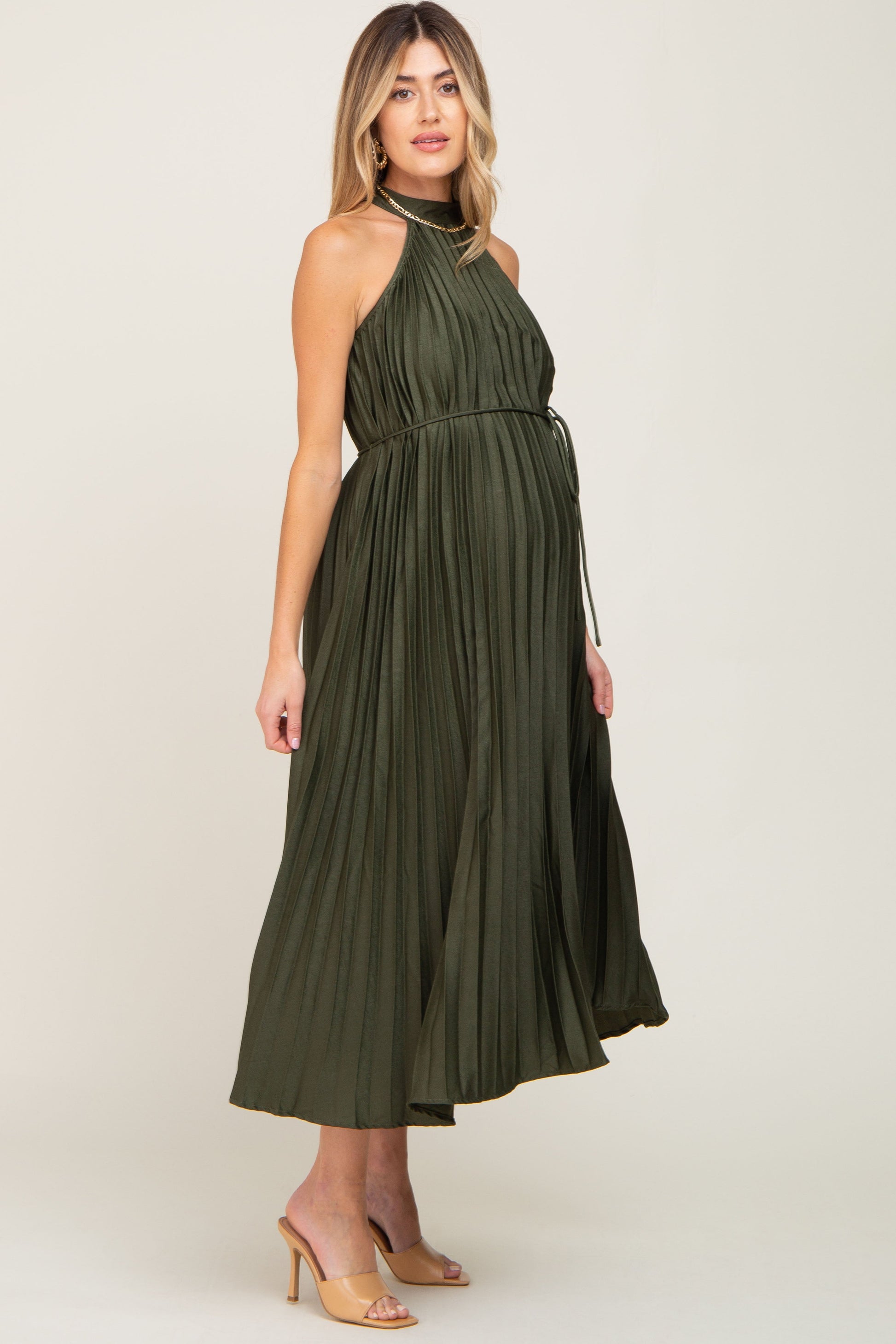 Effortlessly chic, our Olive Pleated Maternity Halter Dress brings comfort and elegance to every stage of pregnancy. The flattering halter neckline highlights your shoulders, while soft pleats create a flowy, bump-friendly silhouette. Crafted from lightweight, breathable fabric, this dress is perfect for baby showers, brunches, or date nights. The stretch waistband gently accommodates your growing bump, ensuring a secure and comfortable fit. Pair with your favorite sandals or heels for an instantly polished look. Embrace your glow and celebrate your journey in style with this must-have maternity dress!