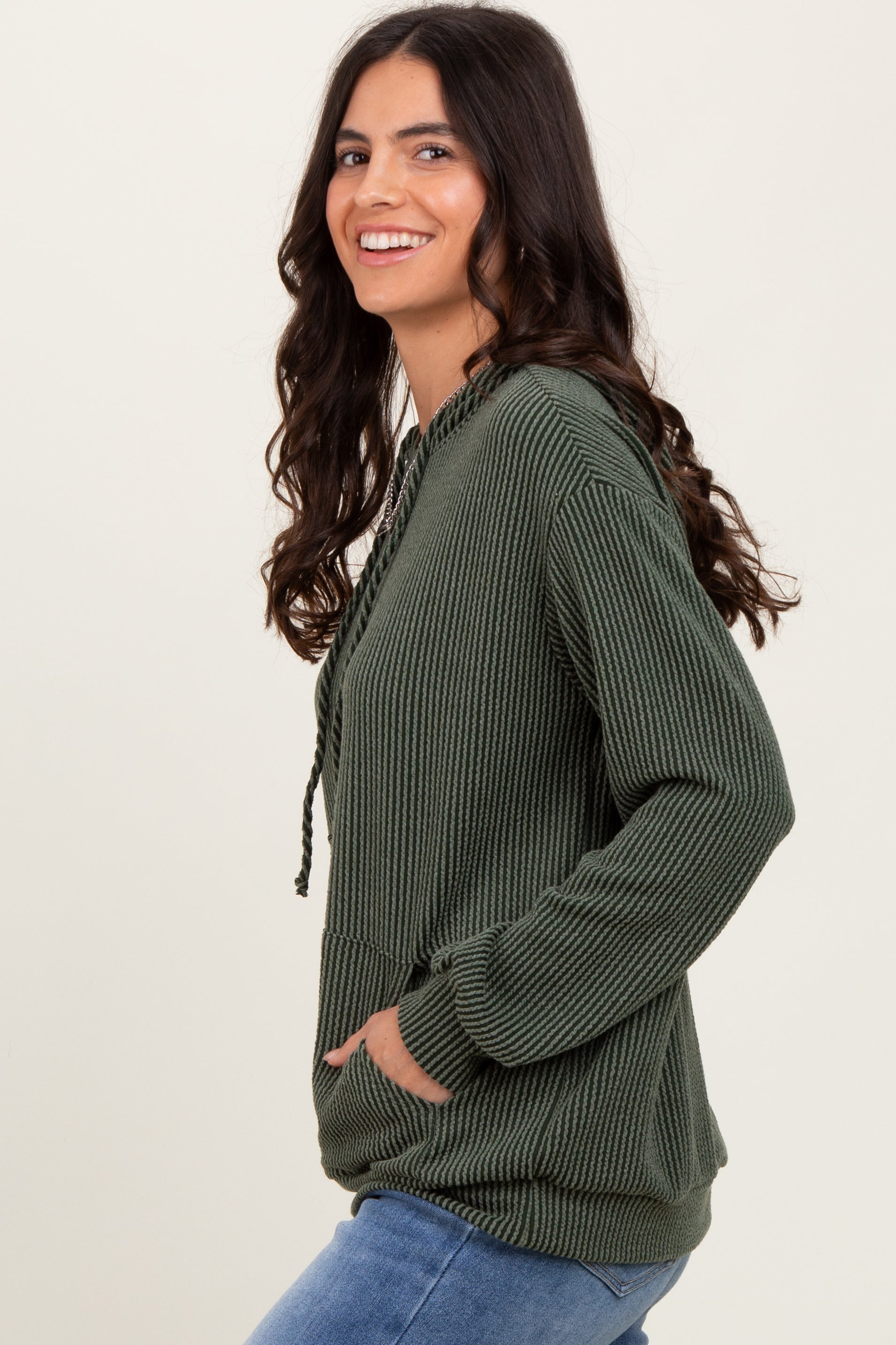 Stay cozy and stylish with our Olive Ribbed Basic Drawstring Hoodie. This must-have piece features a soft ribbed texture that adds subtle detail while keeping you comfortable. The relaxed fit, long sleeves, and adjustable drawstring hood make it perfect for layering or wearing on its own. A convenient front kangaroo pocket adds functionality and a laid-back vibe. Its versatile olive shade pairs effortlessly with your favorite jeans or leggings. Whether you're running errands or lounging at home, this hoodie is your go-to for casual cool. Easy to wear, easy to love!