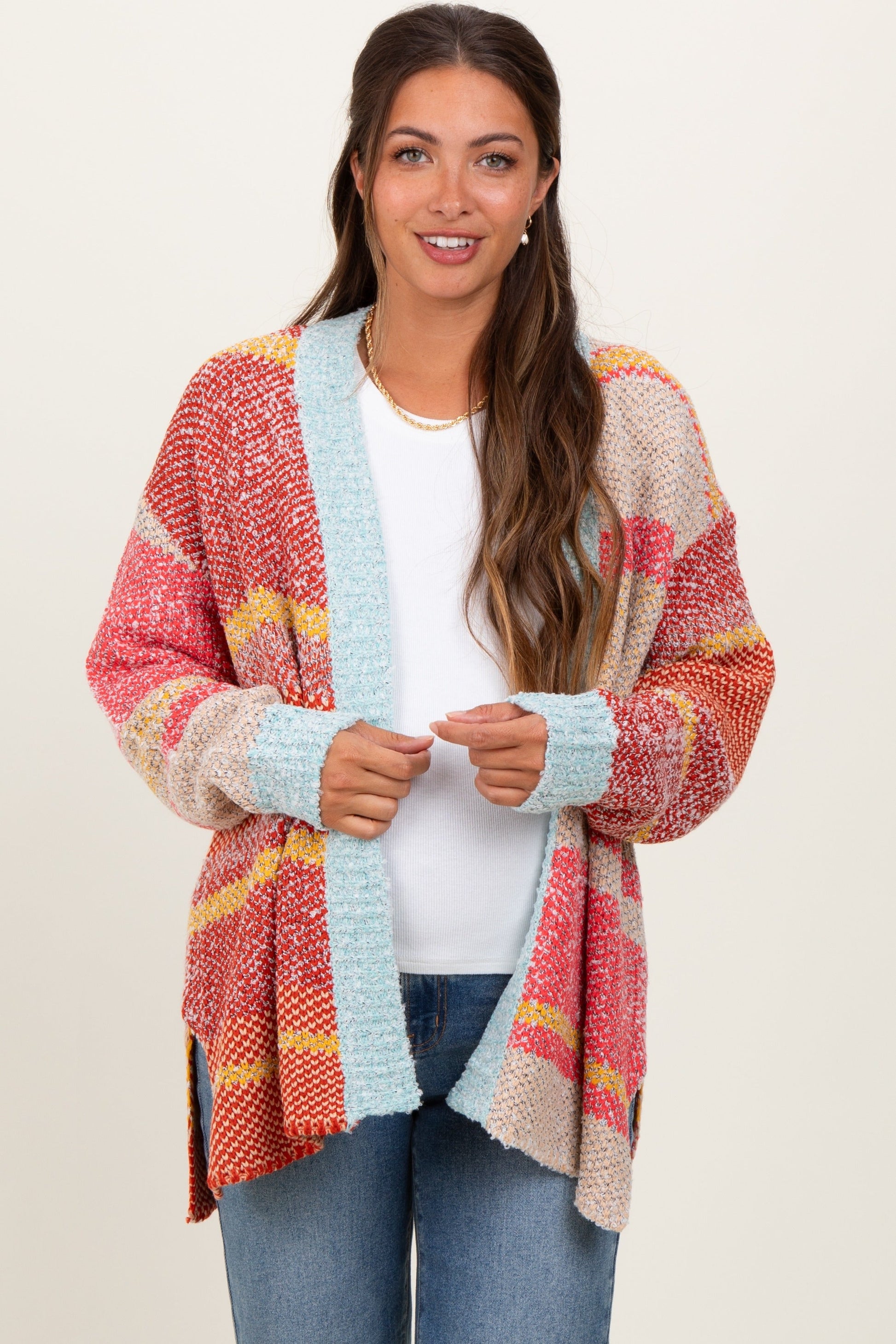Orange Colorblock Stripe Oversized Open Maternity Cardigan