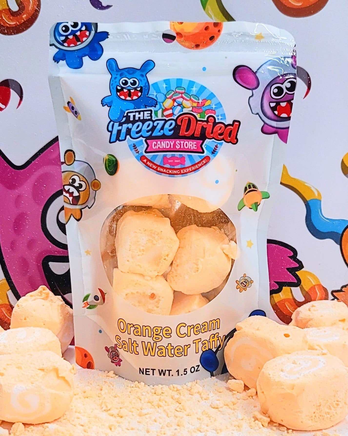 Dive into a candy wonderland with our Freeze-Dried Orange Cream Salt Water Taffy! 🍊🍦✨ This isn’t just any taffy—it's an out-of-this-world fusion of zesty orange and creamy vanilla, transformed into a delightfully crispy, melt-in-your-mouth treat through the magic of freeze-drying. 🌟😋