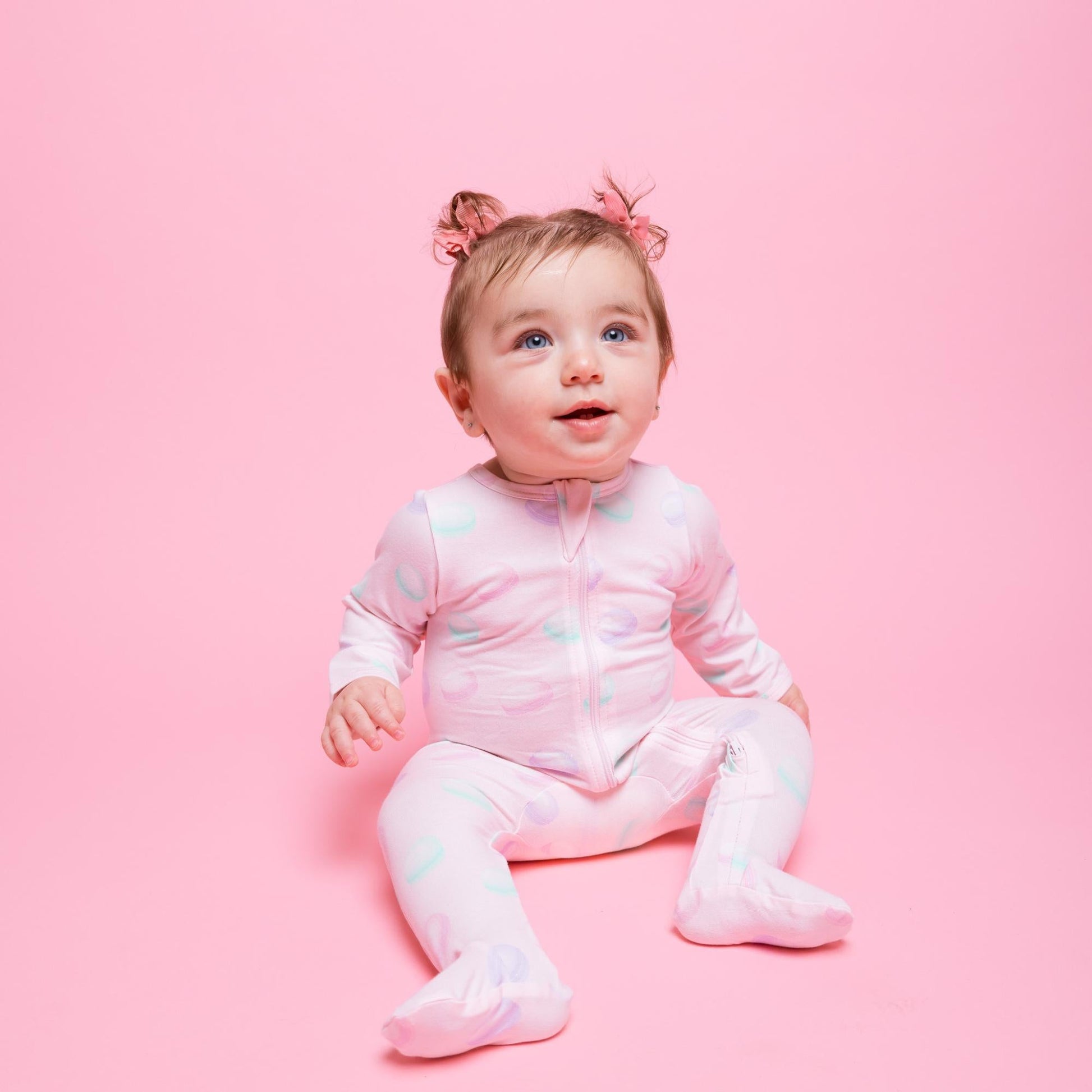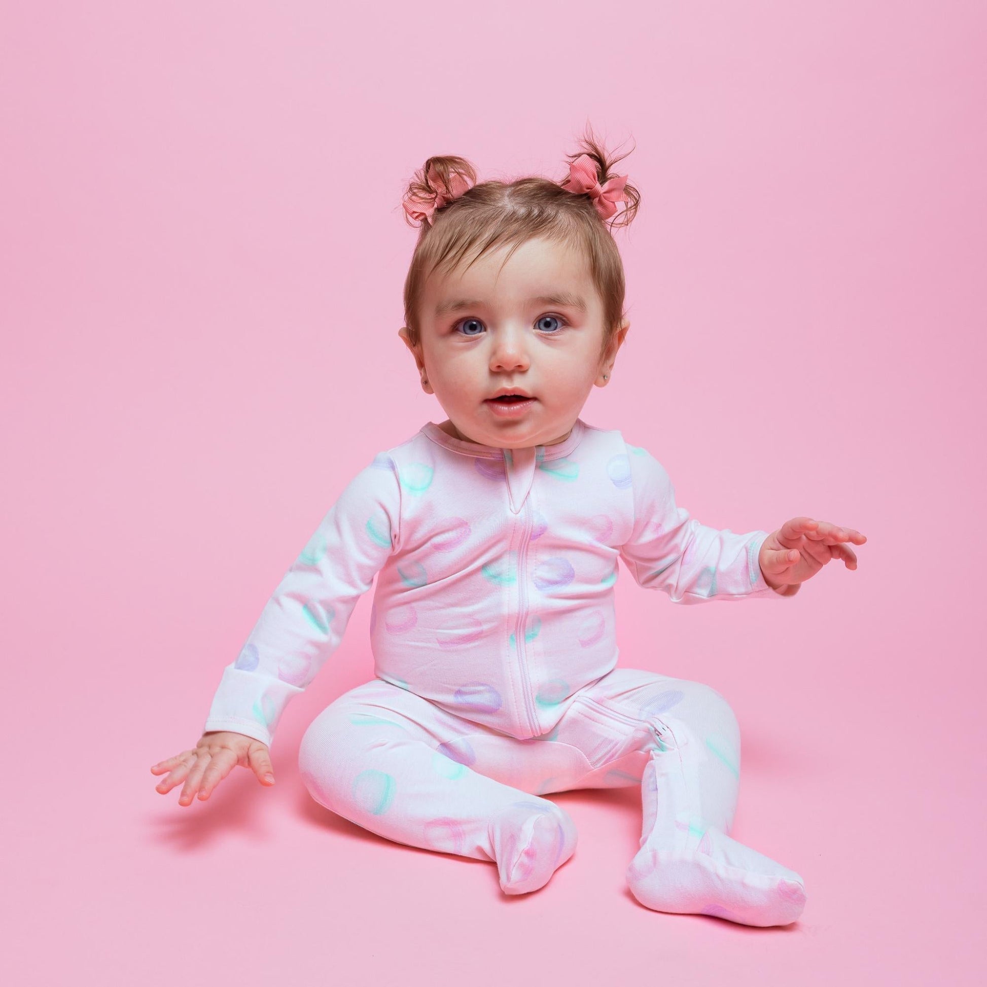 Whoa, baby, you look good! Look at that chic contrast zipper; you’re totally the envy of all the other newborns. Seriously, though, as parents ourselves, we put a lot of thought into our organic footed onesies. We swore an oath never to make them with snaps (because who can align 20 snaps in the dark in the middle of the night?!). So instead, they have a two-way zipper for easy diaper checks (what’s that smell?) and a relaxed hand opening, so you don’t have to live in fear of your child losing a pinkie finger while getting dressed.
