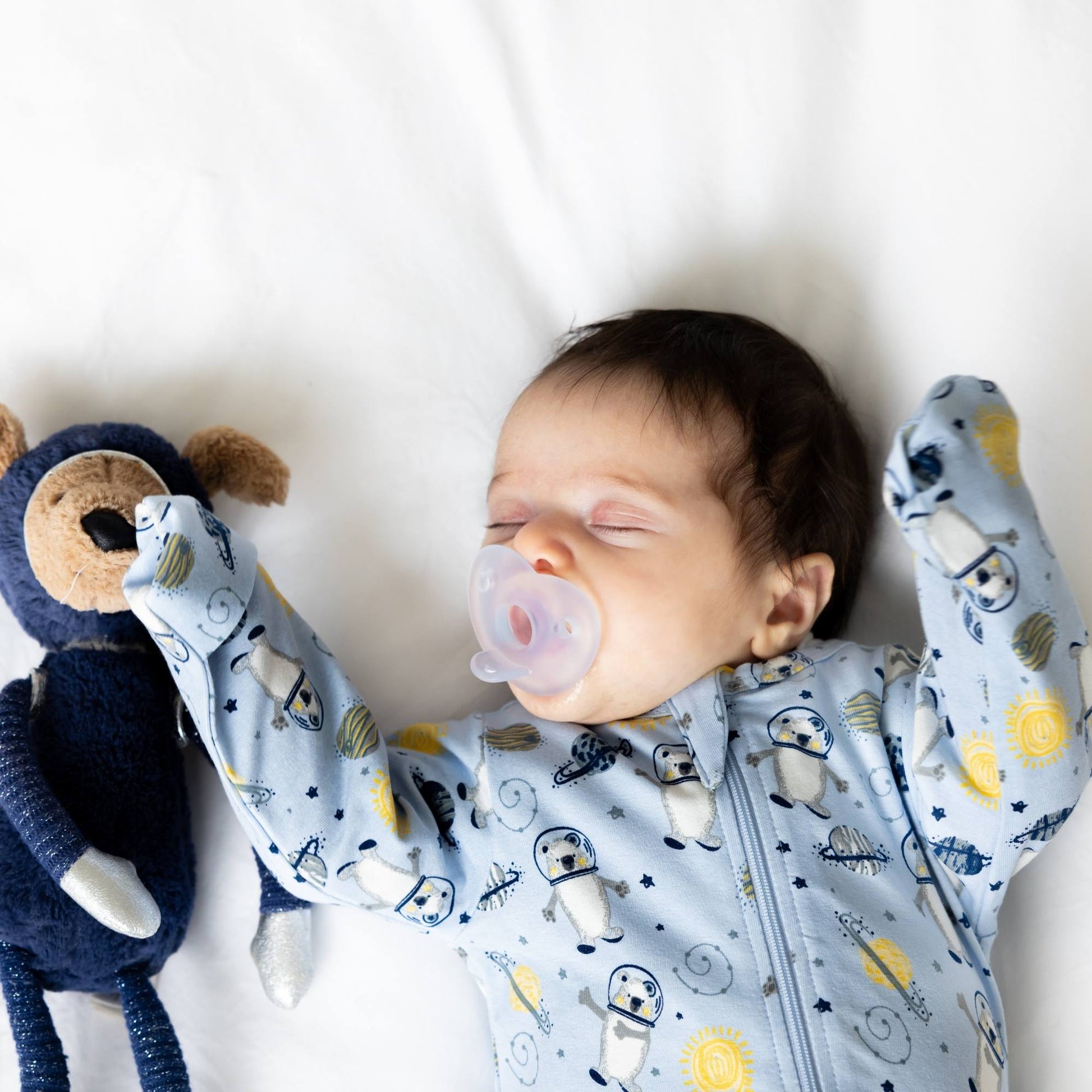 Whoa, baby, you look good! Look at that chic contrast zipper; you’re totally the envy of all the other newborns. Seriously, though, as parents ourselves, we put a lot of thought into our organic footed onesies. We swore an oath never to make them with snaps (because who can align 20 snaps in the dark in the middle of the night?!). So instead, they have a two-way zipper for easy diaper checks (what’s that smell?) and a relaxed hand opening, so you don’t have to live in fear of your child losing a pinkie finger while getting dressed.