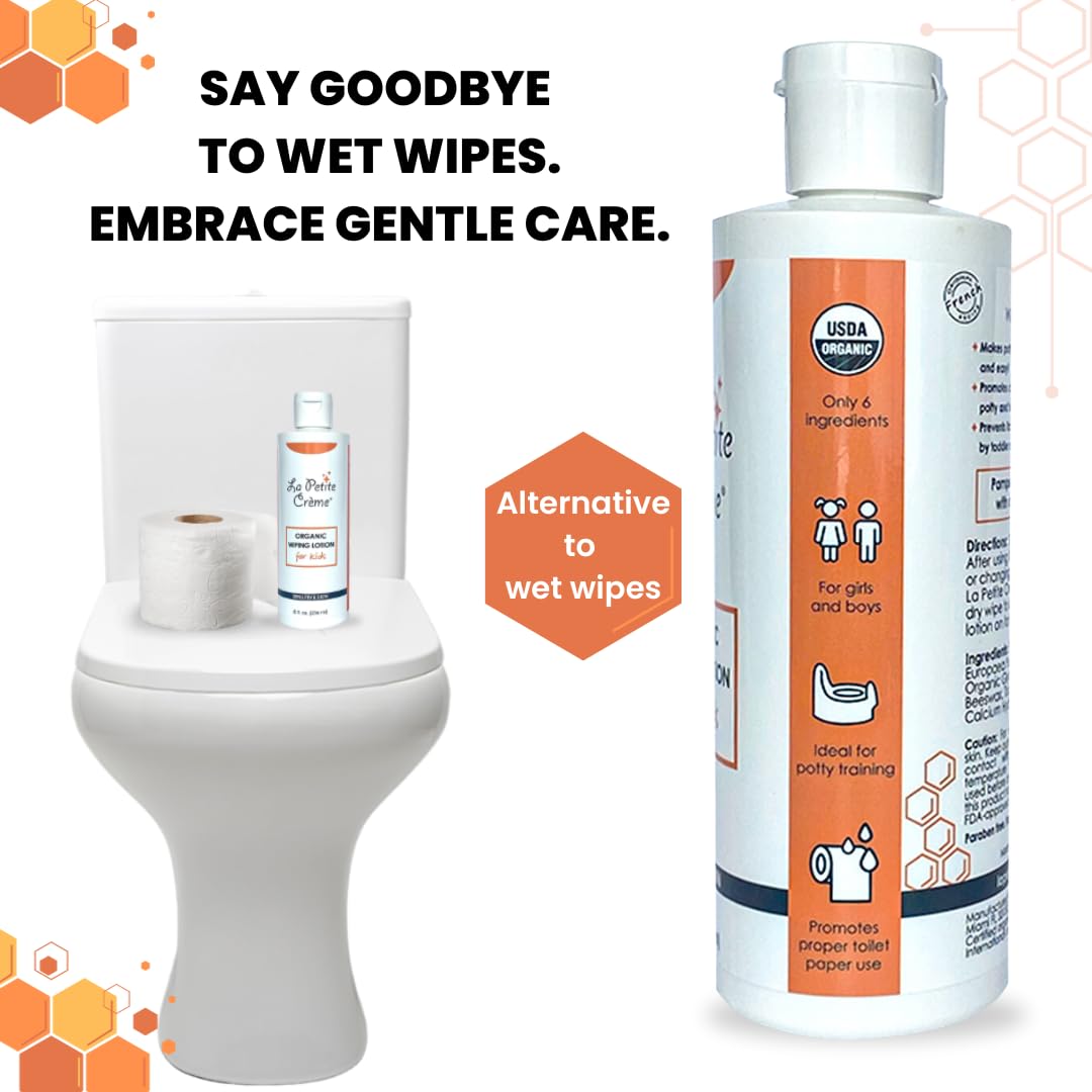 Ease the transition from diapers to the potty with our Organic Toilet Wiping Lotion for Kids. Order now to infuse a touch of organic nature and comfort, turning each step towards independence into a joyous adventure!