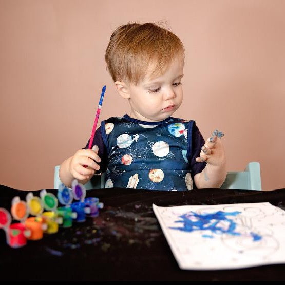 This best-selling “Bapron”, also known as a bib-apron hybrid, full-coverage bib, smock, or apron, is designed for comfort and safety. Because of their comfortable, secure-fitting horizontal ties and their full-coverage design, Baprons are the perfect companion for mealtime, art, and sensory play!