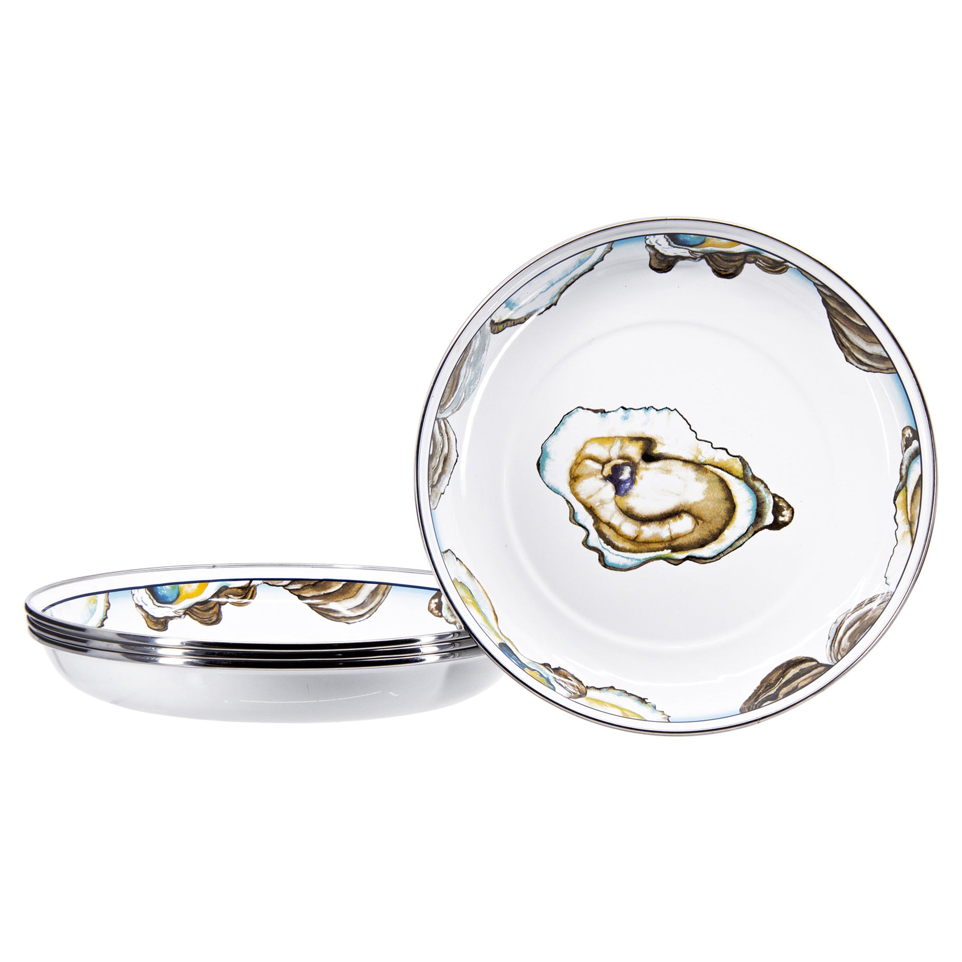 Savor your favorite pasta dishes with the Oyster Pasta Plates - Set of 4. Featuring a charming oyster design, these enamelware plates are perfect for serving generous portions of pasta, seafood, or other delicious meals. Durable and elegant, they bring a touch of coastal charm to your dining table, making every meal feel like a seaside retreat.