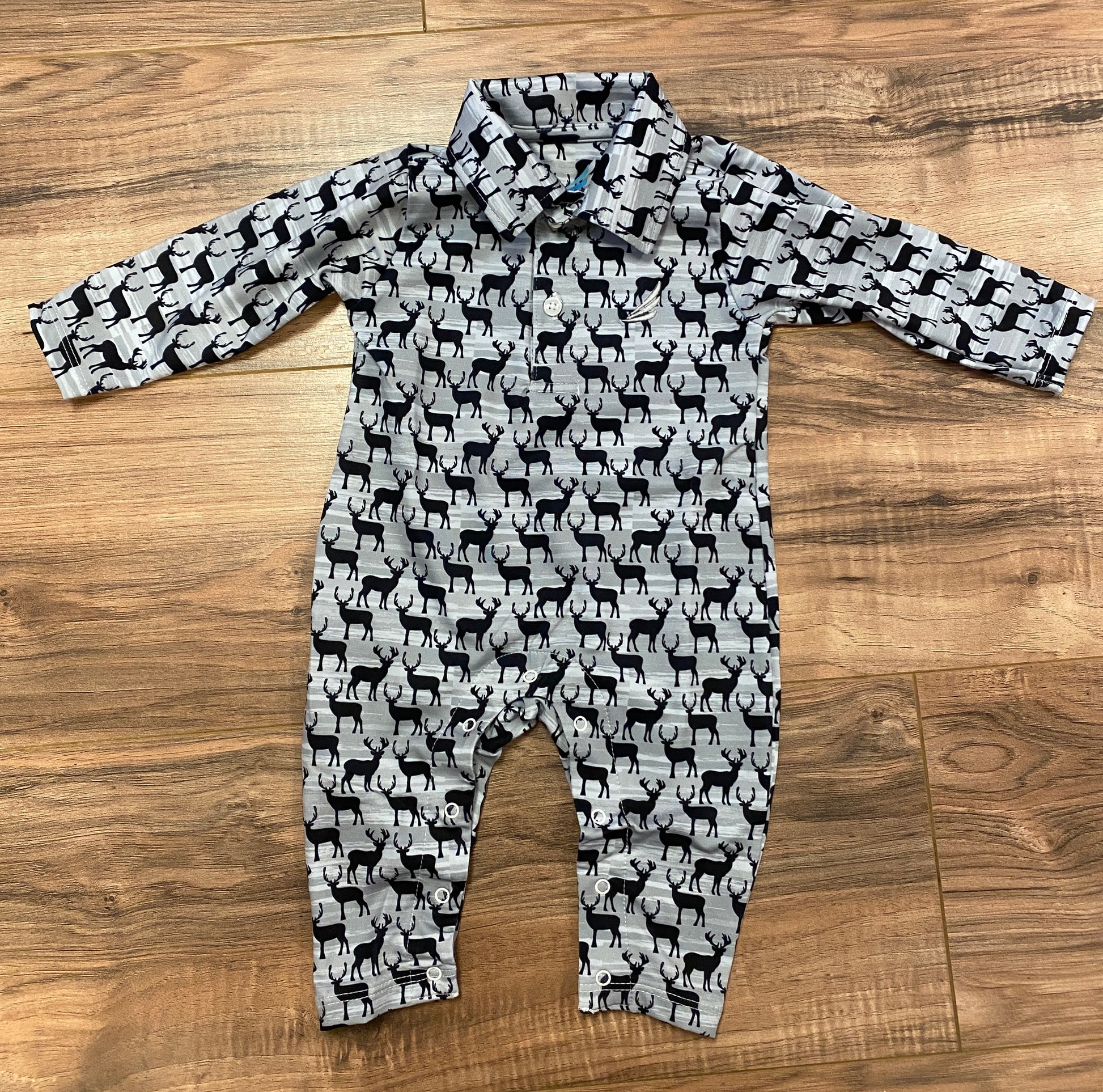 Performance Deer Print Baby Romper – Long Sleeve Collared One-Piece