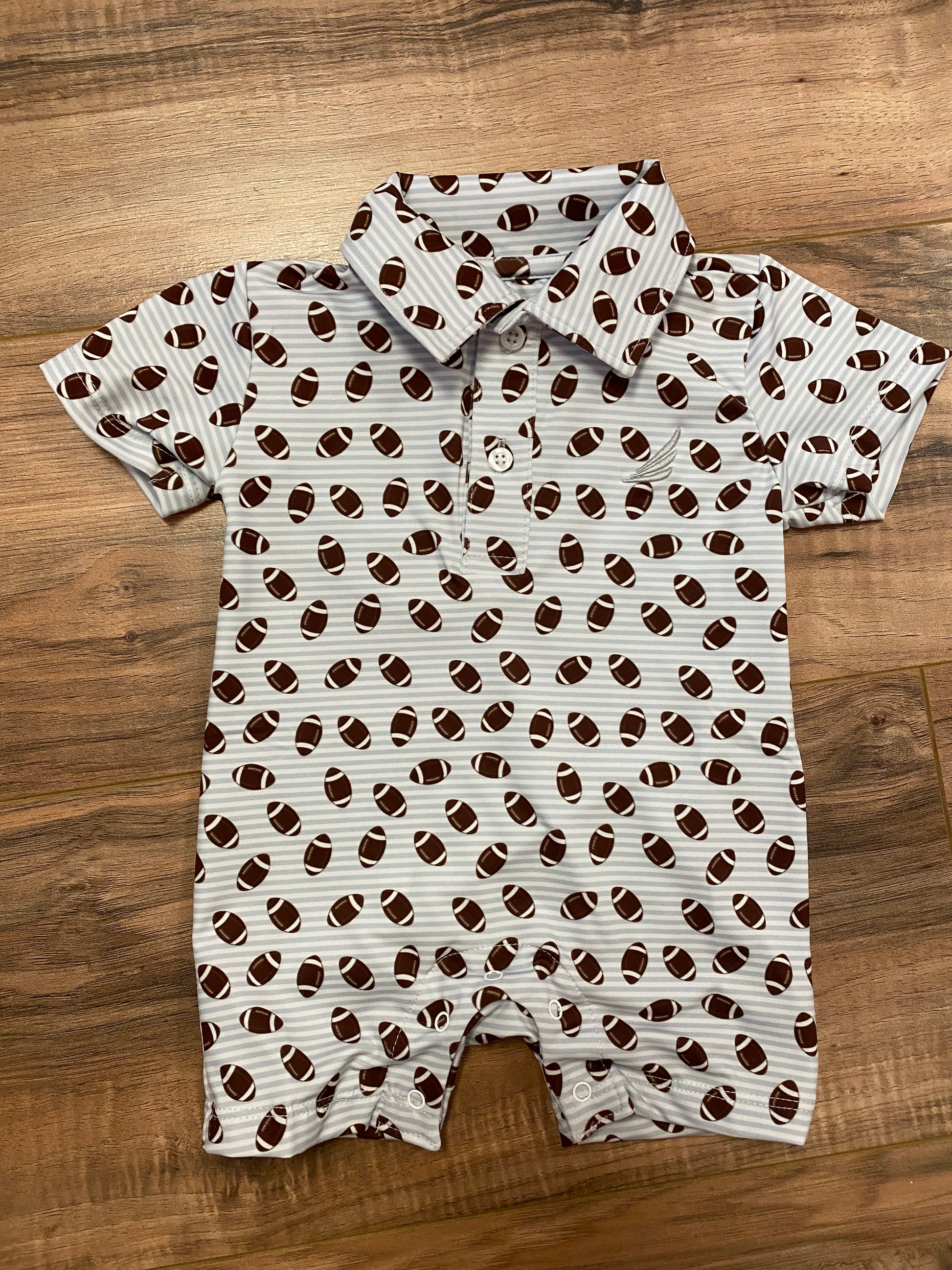 Performance Football Print Baby Romper – Short Sleeve Collared One-Piece