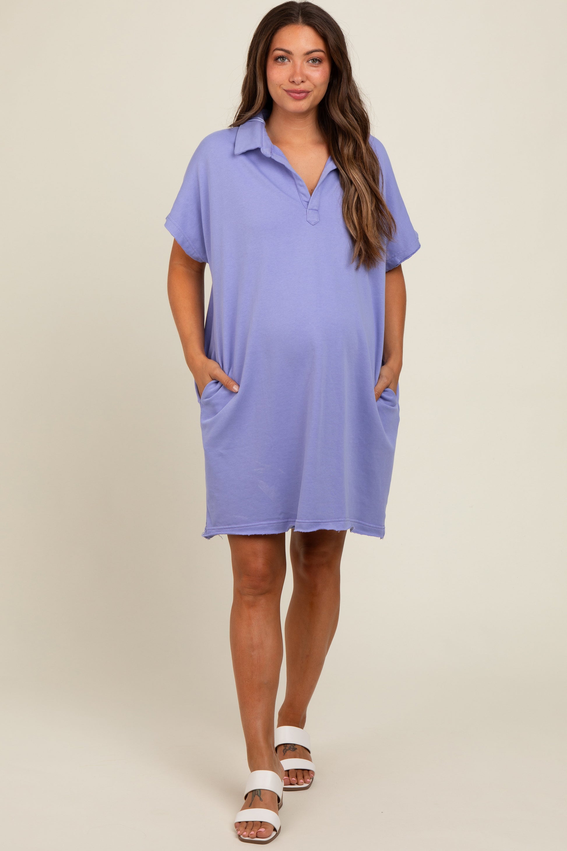 Periwinkle Mineral Washed French Terry Maternity Dress