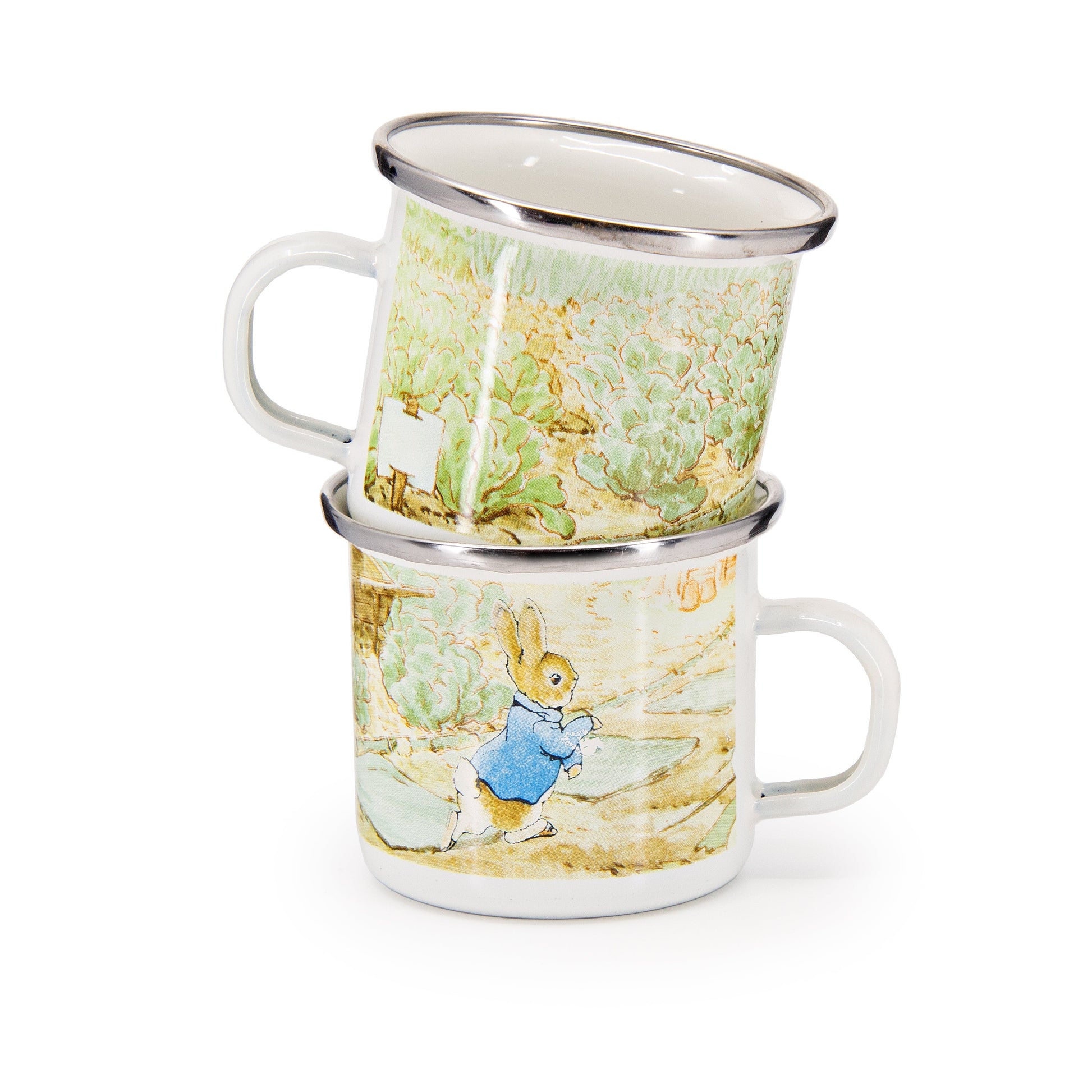 The Peter Rabbit Child Mugs set brings Beatrix Potter’s beloved character to life with colorful illustrations that will delight little ones. Perfect for adding a whimsical touch to any mealtime, these durable enamel mugs are designed to withstand daily use while offering timeless charm.