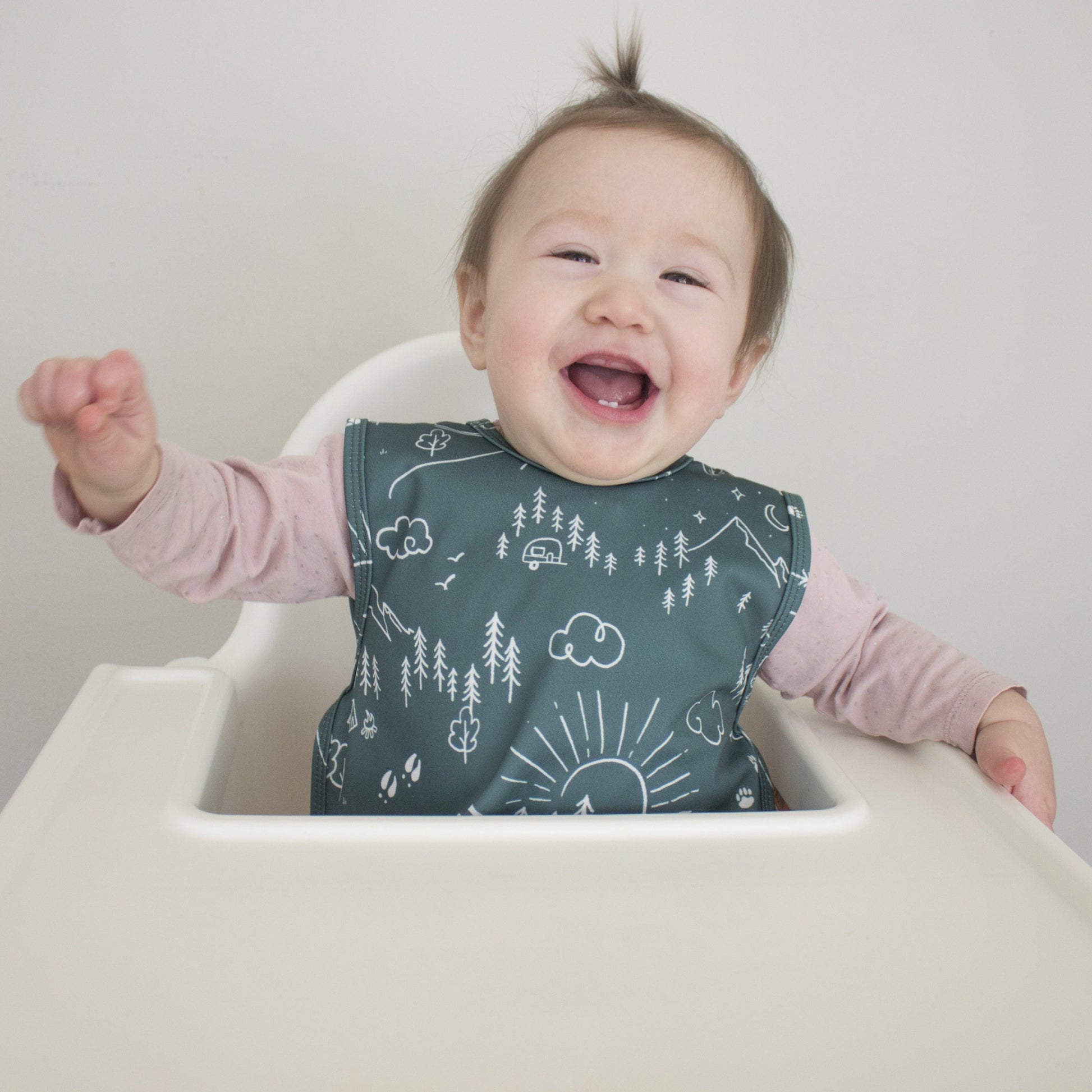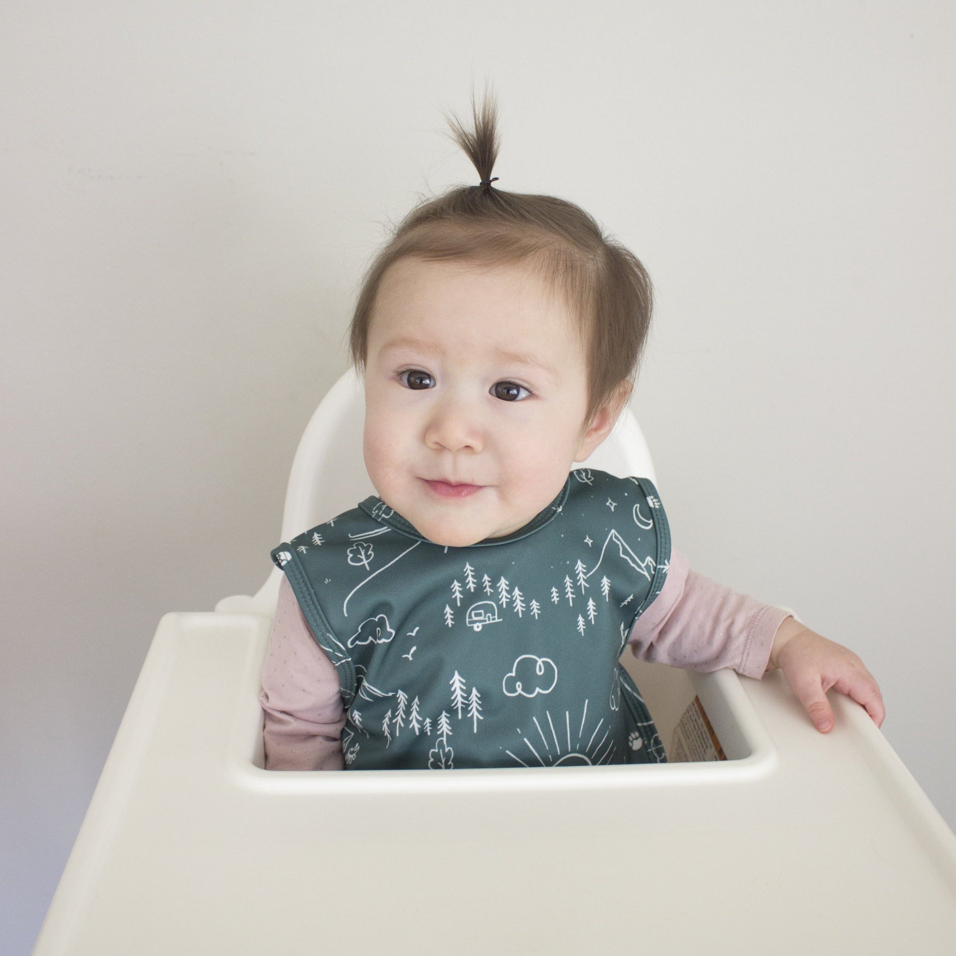 This best-selling “Bapron”, also known as a bib-apron hybrid, full-coverage bib, smock, or apron, is designed for comfort and safety. Because of their comfortable, secure-fitting horizontal ties and their full-coverage design, Baprons are the perfect companion for mealtime, art, and sensory play!