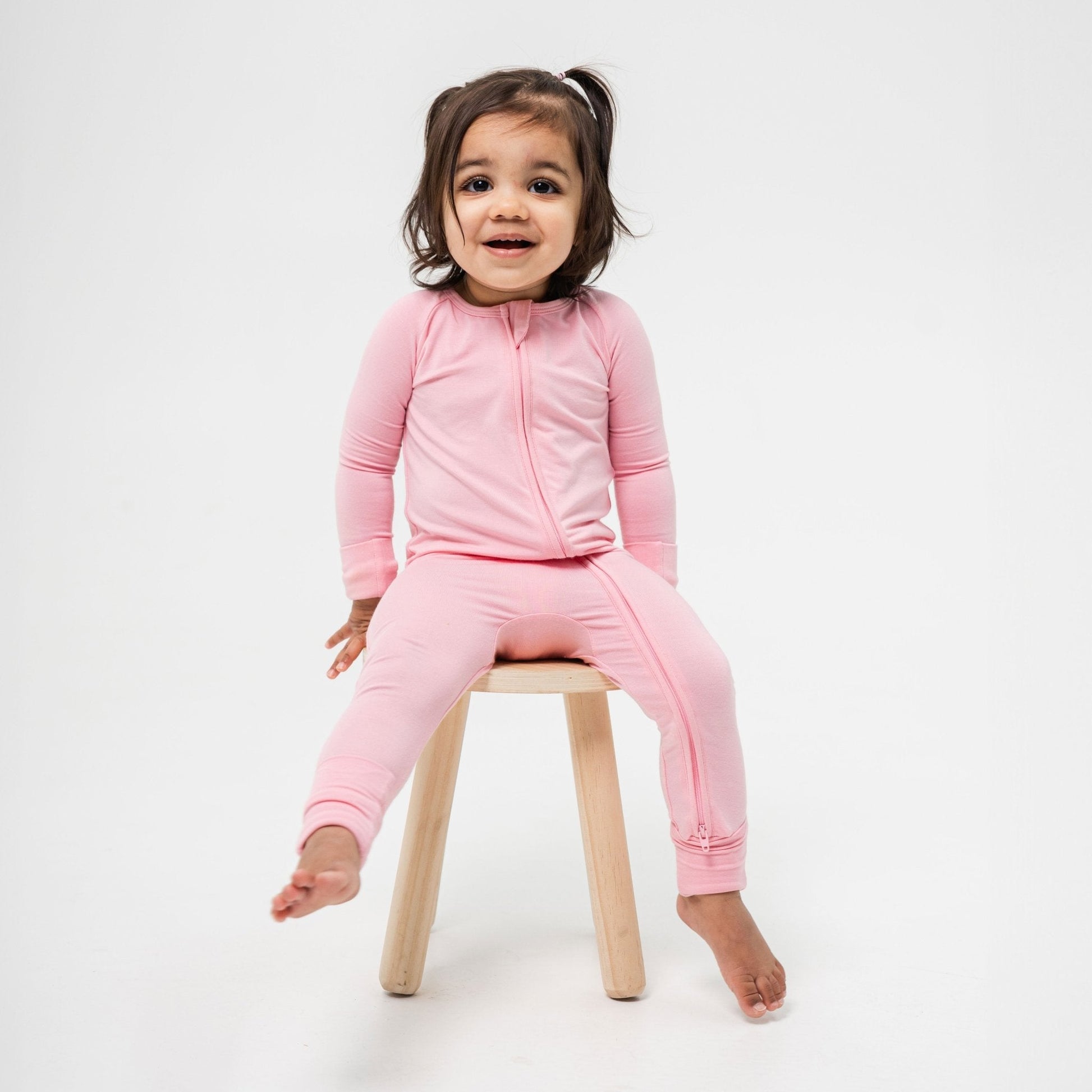 A two-way zipper means getting in and out of the pink onesie pajamas is quick and easy