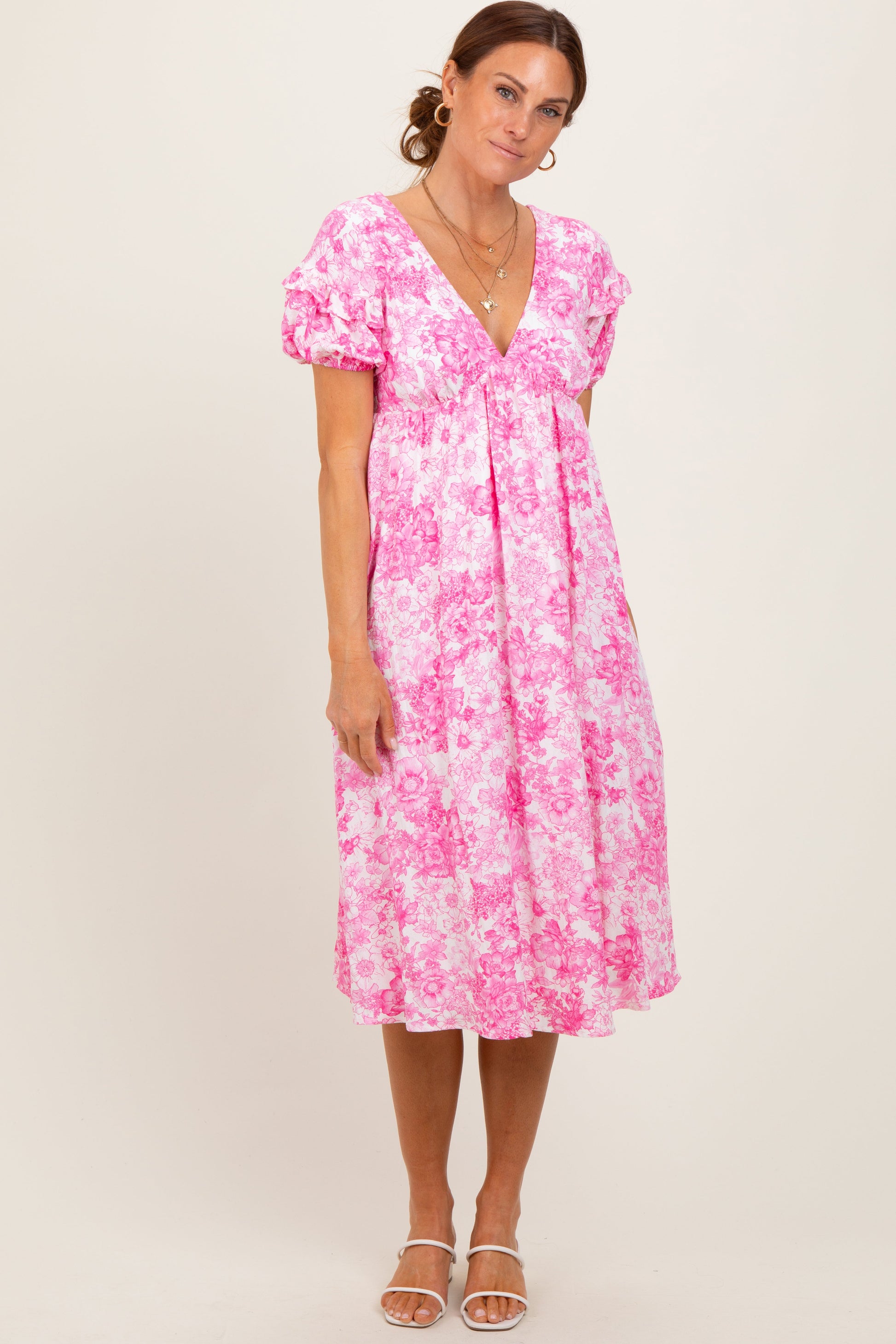 Pink Floral Woven Short Sleeve Mini Dress