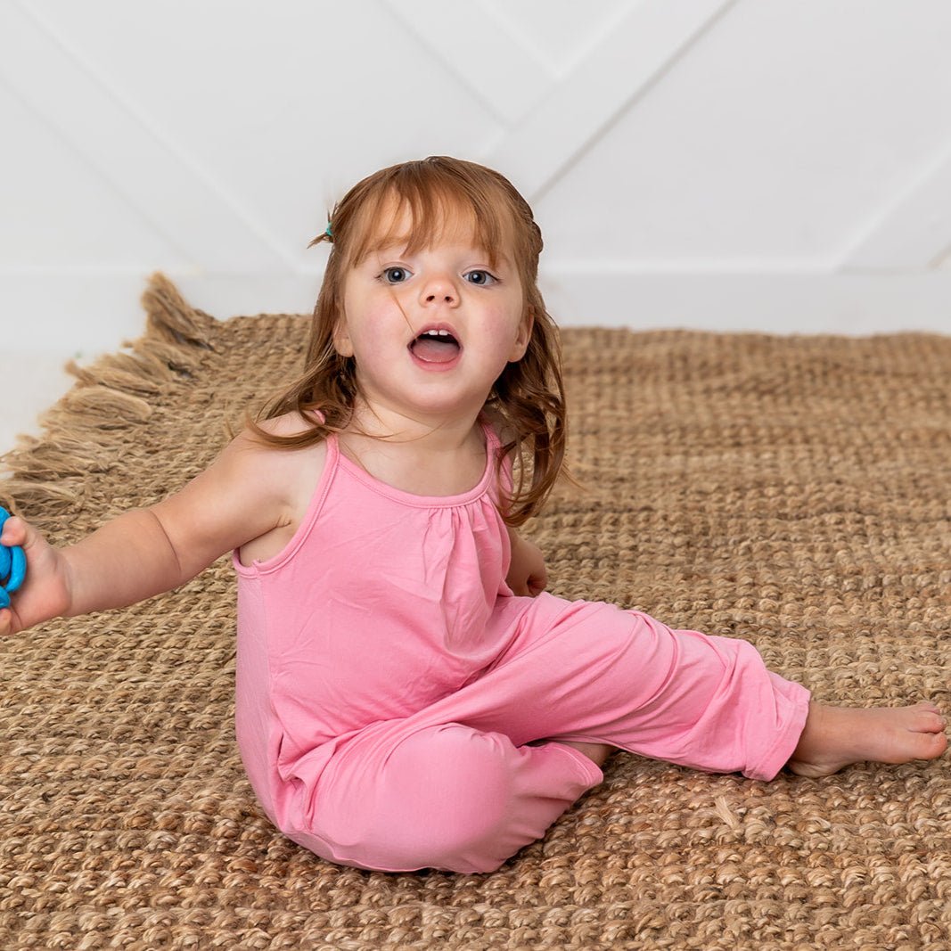 This comfy jumpsuit with pockets is made to fill any toddler with fun and frolic in the sun! Soft bamboo fabric keeps them comfy and stylish while they explore, frolic, and flutter through their day!