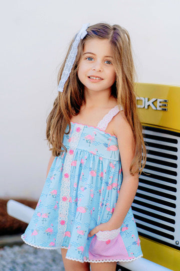 Experience the beauty of spring with our Pink Paradise Tunic Set! This adorable set features a playful flamingo print tunic paired with comfy seersucker shorts, making it perfect for any little girl. Embrace cuteness and style with this must-have outfit for the season.
