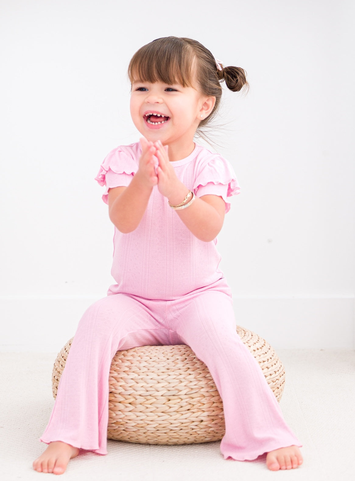 Pink Pointelle Bell Bottom Set