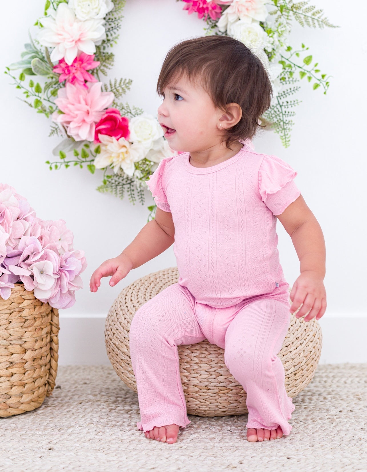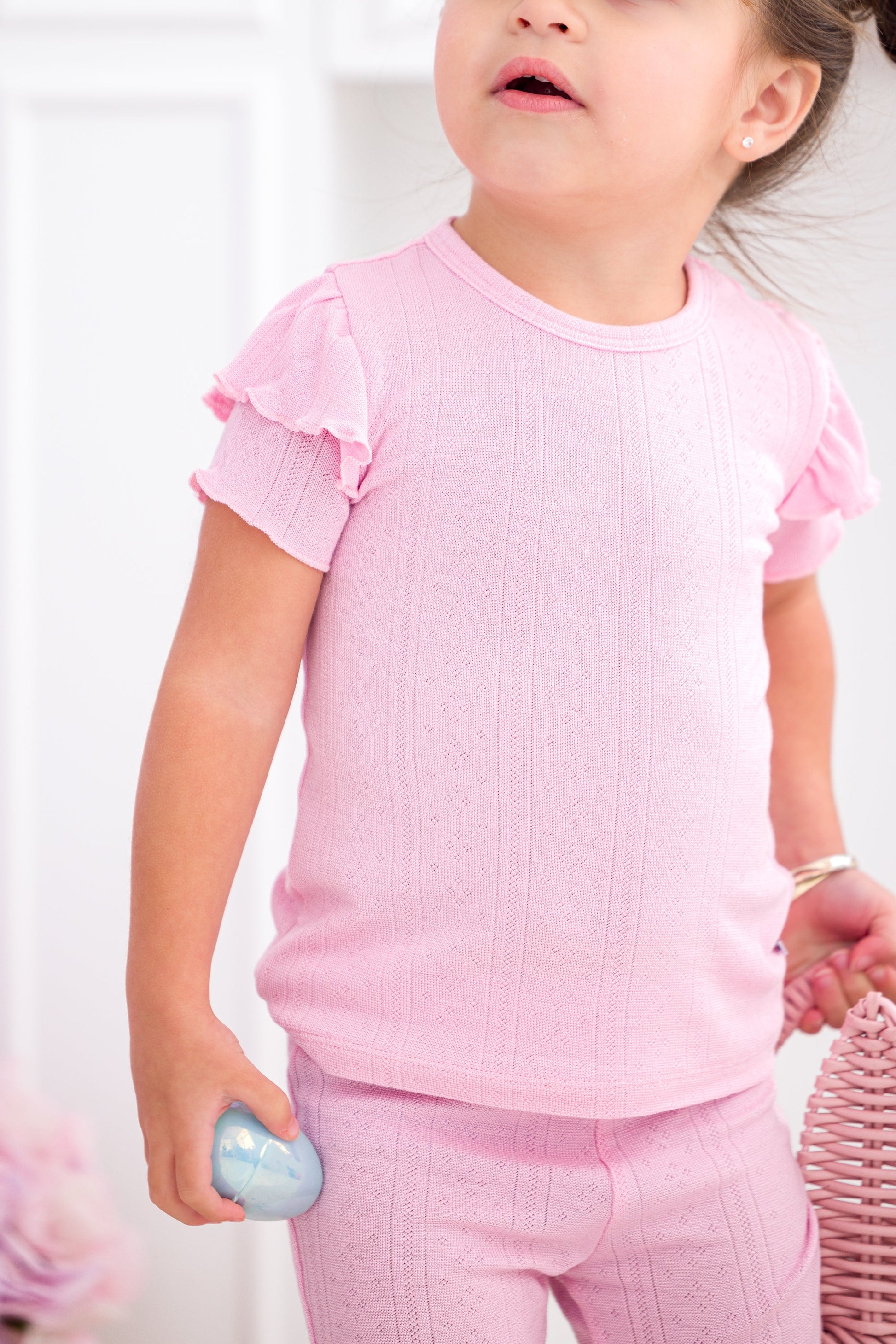 Dress your little one in comfort and cuteness this spring season with our matching bell bottom set, crafted from beautifully textured pointelle fabric. This two-piece set offers the same buttery softness and durability you love, with the added charm of a delicate, pointelle fabric. The breathable, lightweight feel and gentle stretch make it perfect for Easter egg hunts, spring celebrations, and everyday adventures!