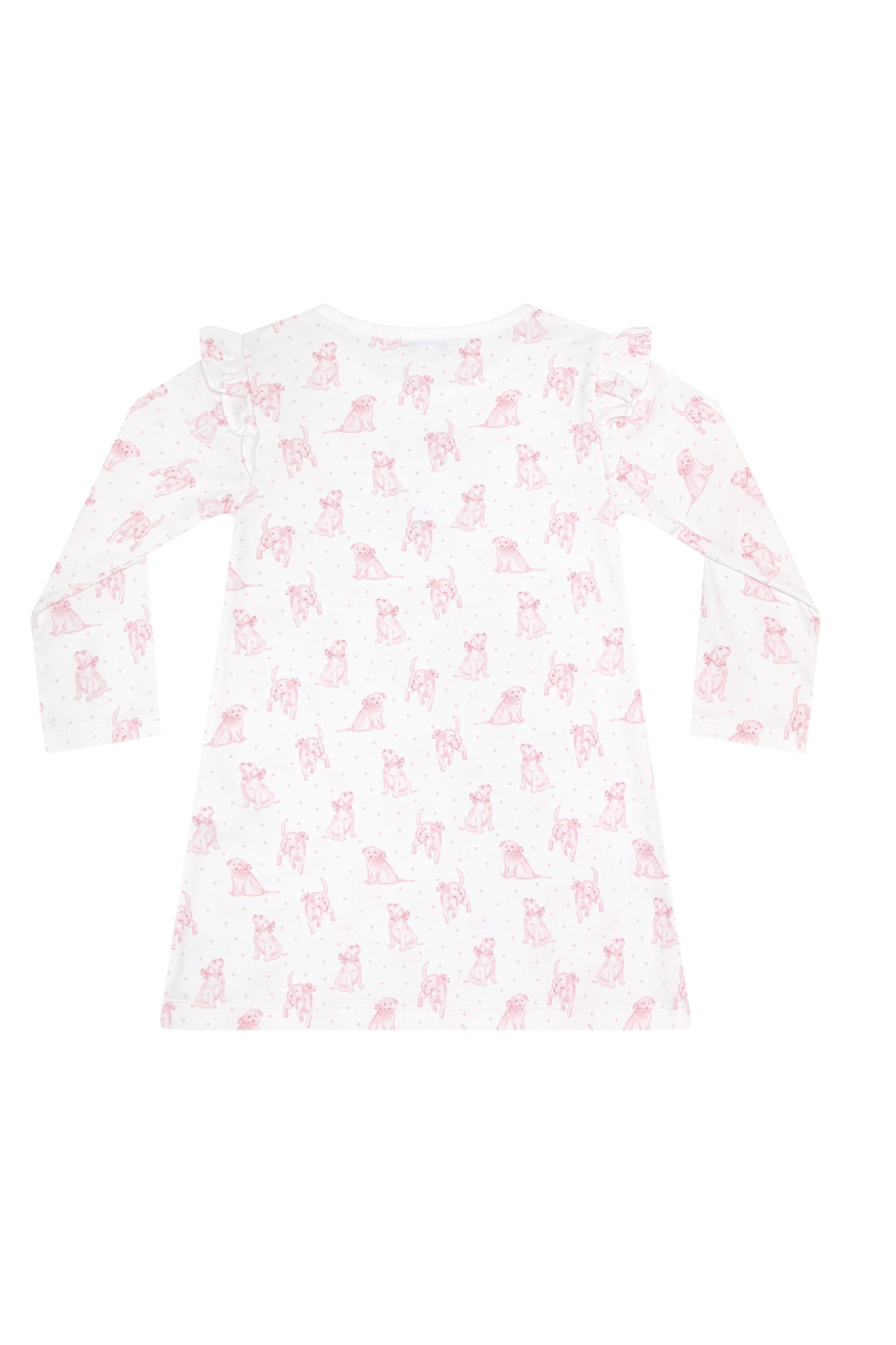 Crafted from luxurious Pima cotton, this dress is perfect for twirling, exploring, or cuddling. The sweet puppy print in soft pink adds a playful touch, while the breathable fabric keeps your child comfortable all day. Delicate trim and a relaxed silhouette ensure both elegance and practicality. Designed to be worn and loved.