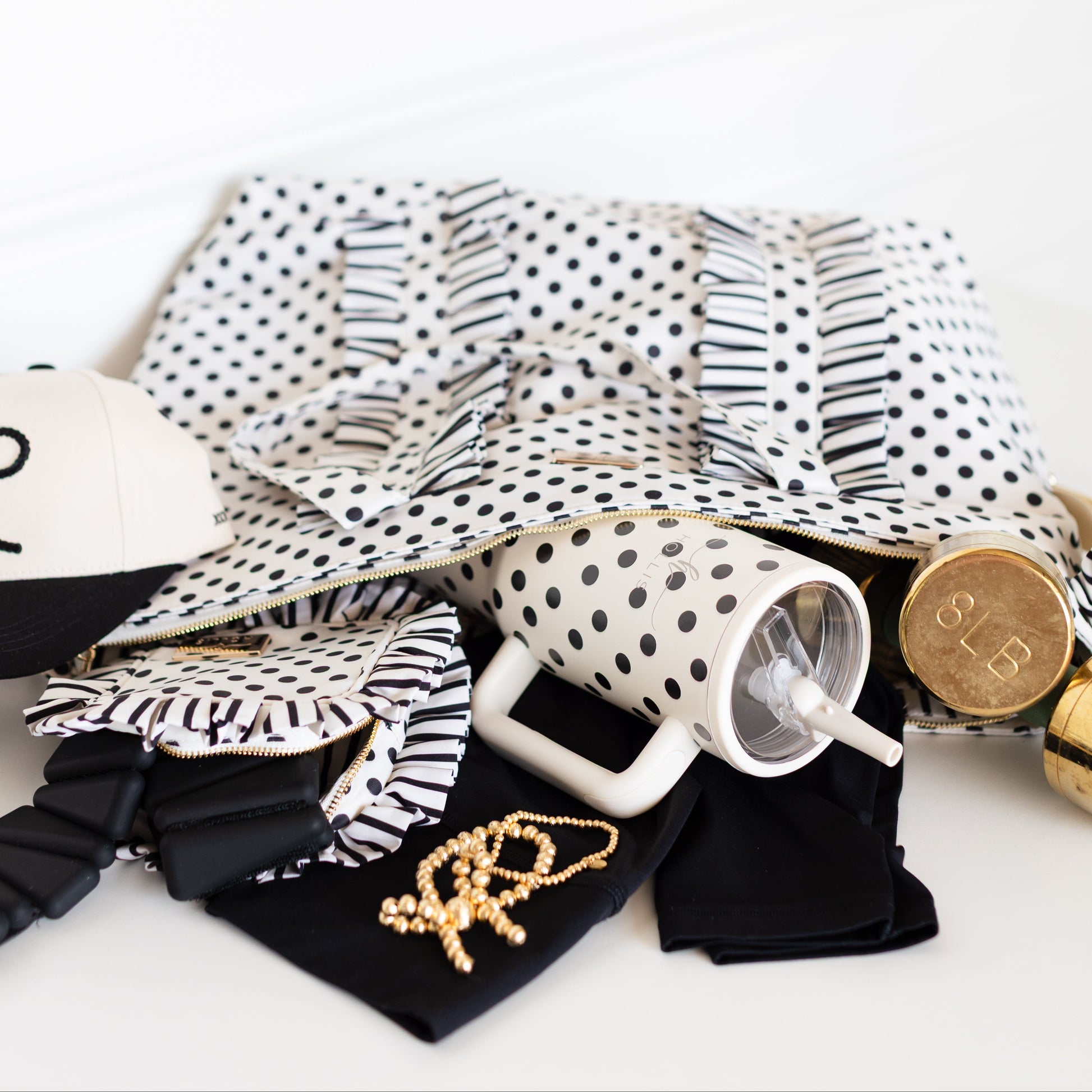 Introducing our NEW Polka Stripe Ruffled Nylon Tote!