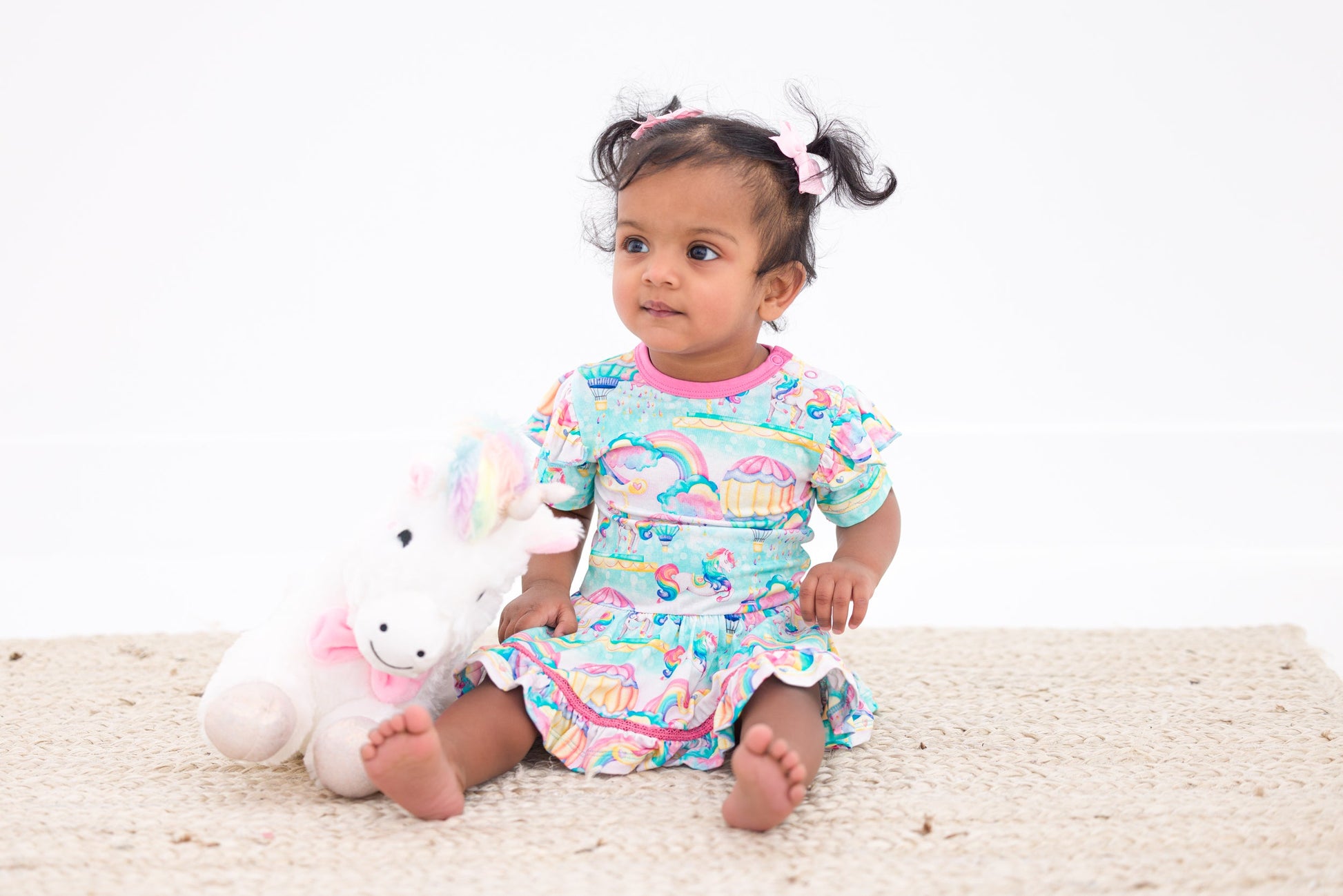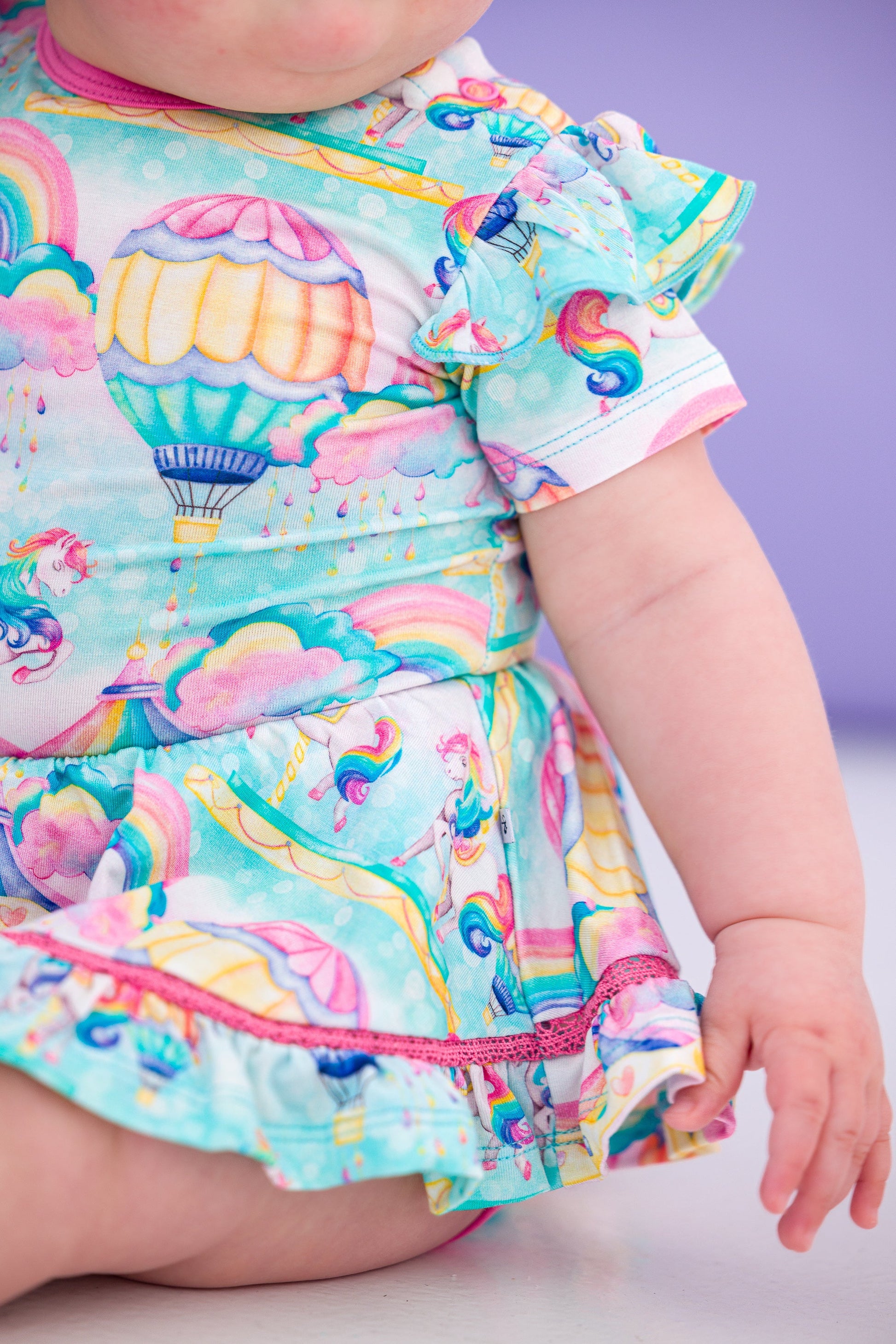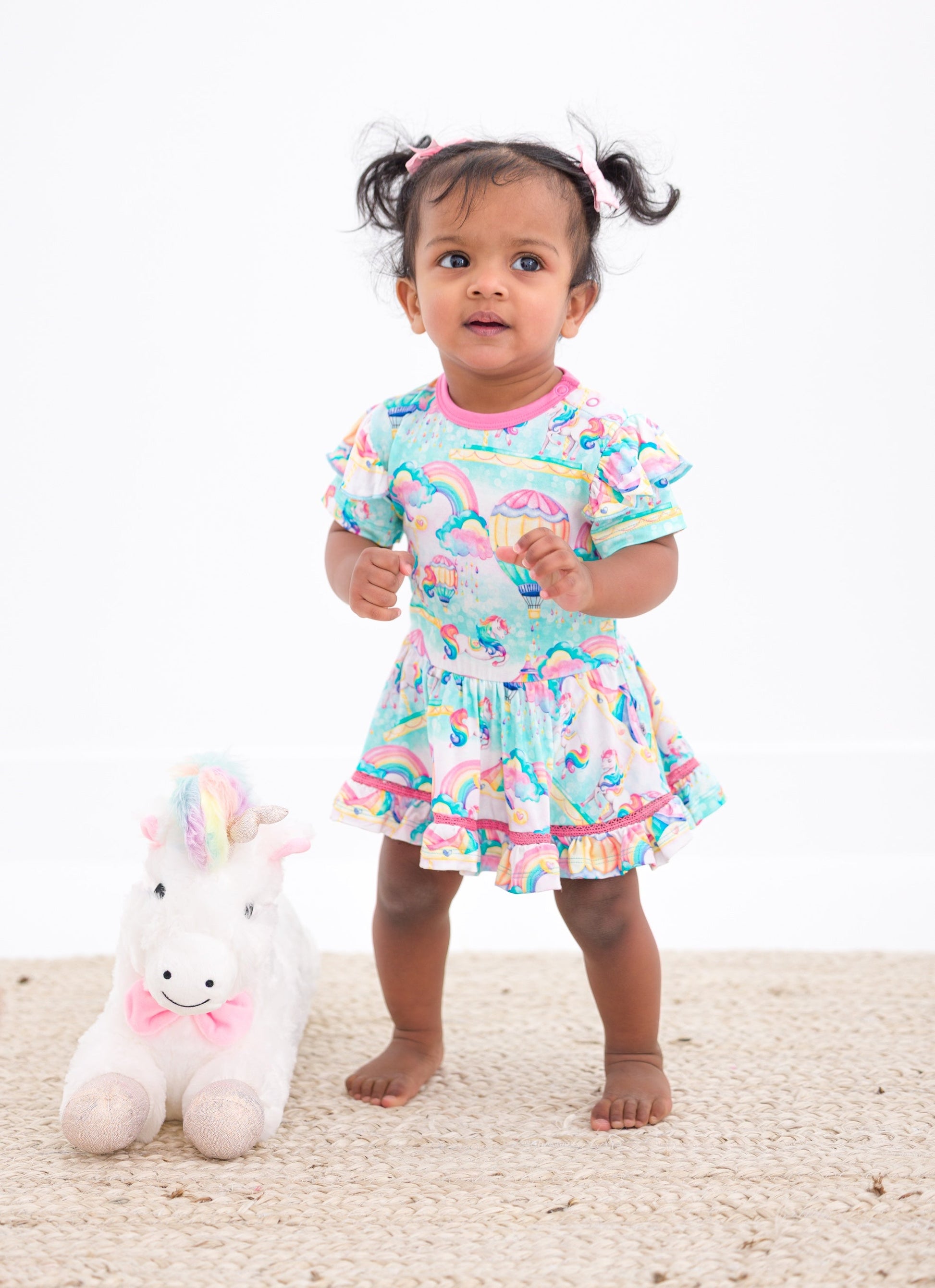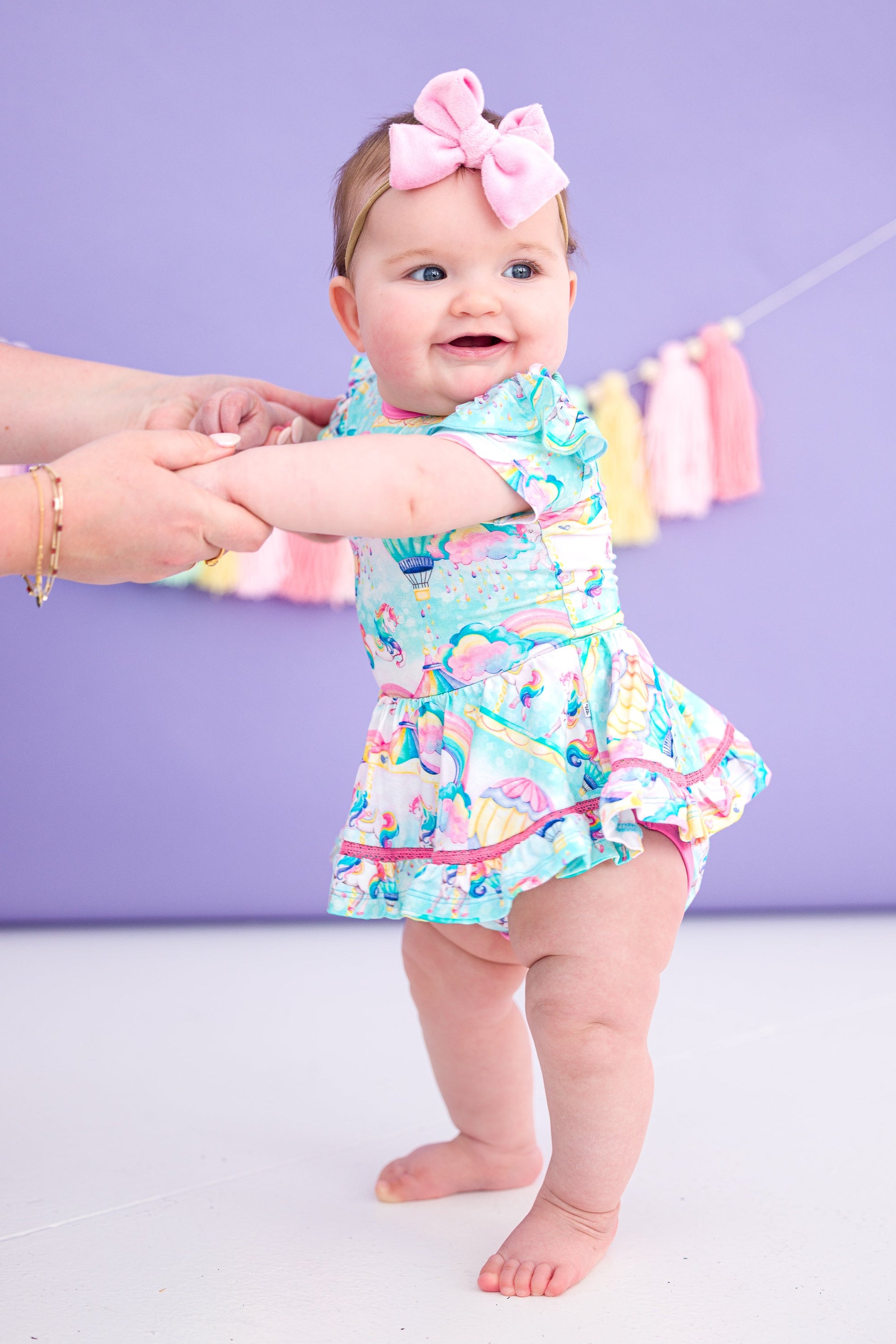 Designed with your little one's comfort and imagination in mind, this whimsical carousel-themed Birdie Twirl is a must-have for playful adventures and special occasions. Made from a luxurious blend of bamboo viscose and spandex, it offers breathability and stretch for the perfect fit. The buttery-soft fabric ensures all-day comfort, while the enchanting carousel design brings a touch of magic to their wardrobe.