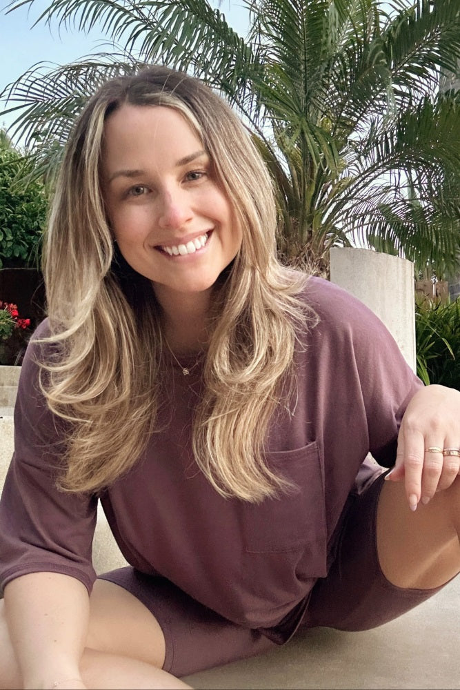 A sleep set featuring a dolman short sleeve top with a front pocket and a pair of biker shorts.
