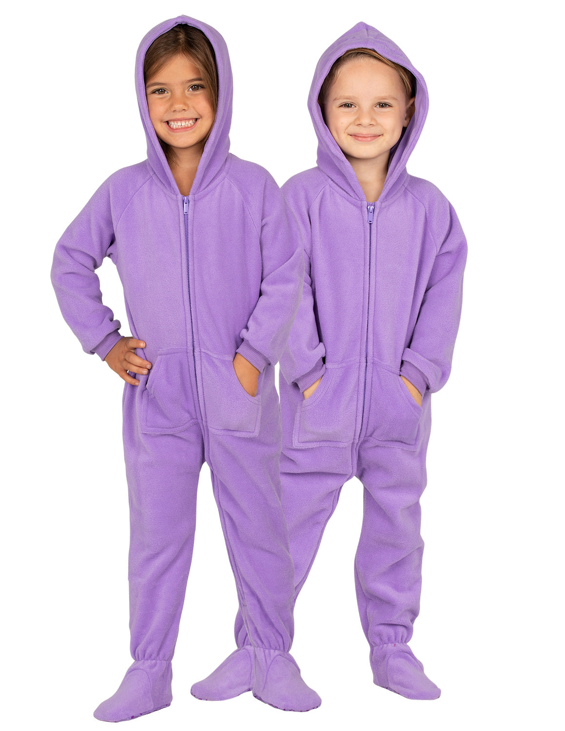 These perfectly purple onesies are made for both boys and girls! Soft, plush fleece blankets the entire body in warm luxurious fabric. These fun footies for kids feature hoodies and pockets - making them as stylish and practical as they are cozy! All kids love these trendy and ultra comfortable footed pajamas! They’ll never outgrow their love of these childhood comforts!