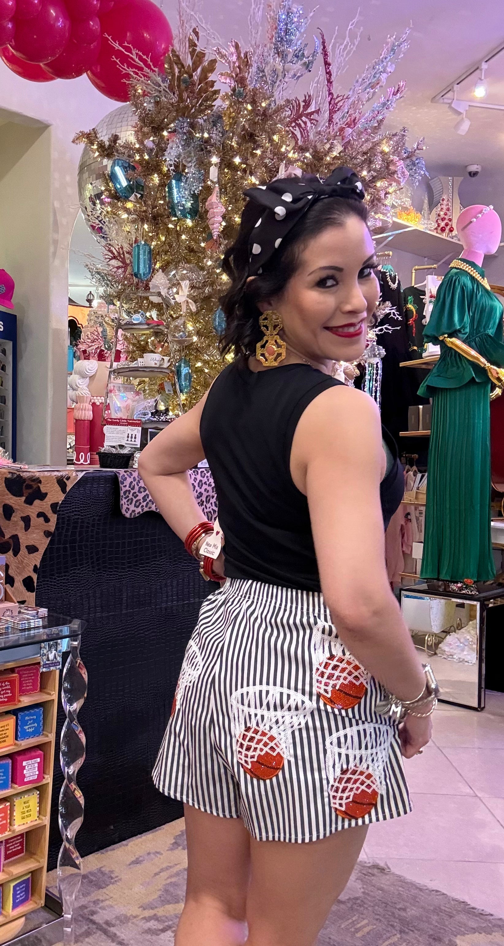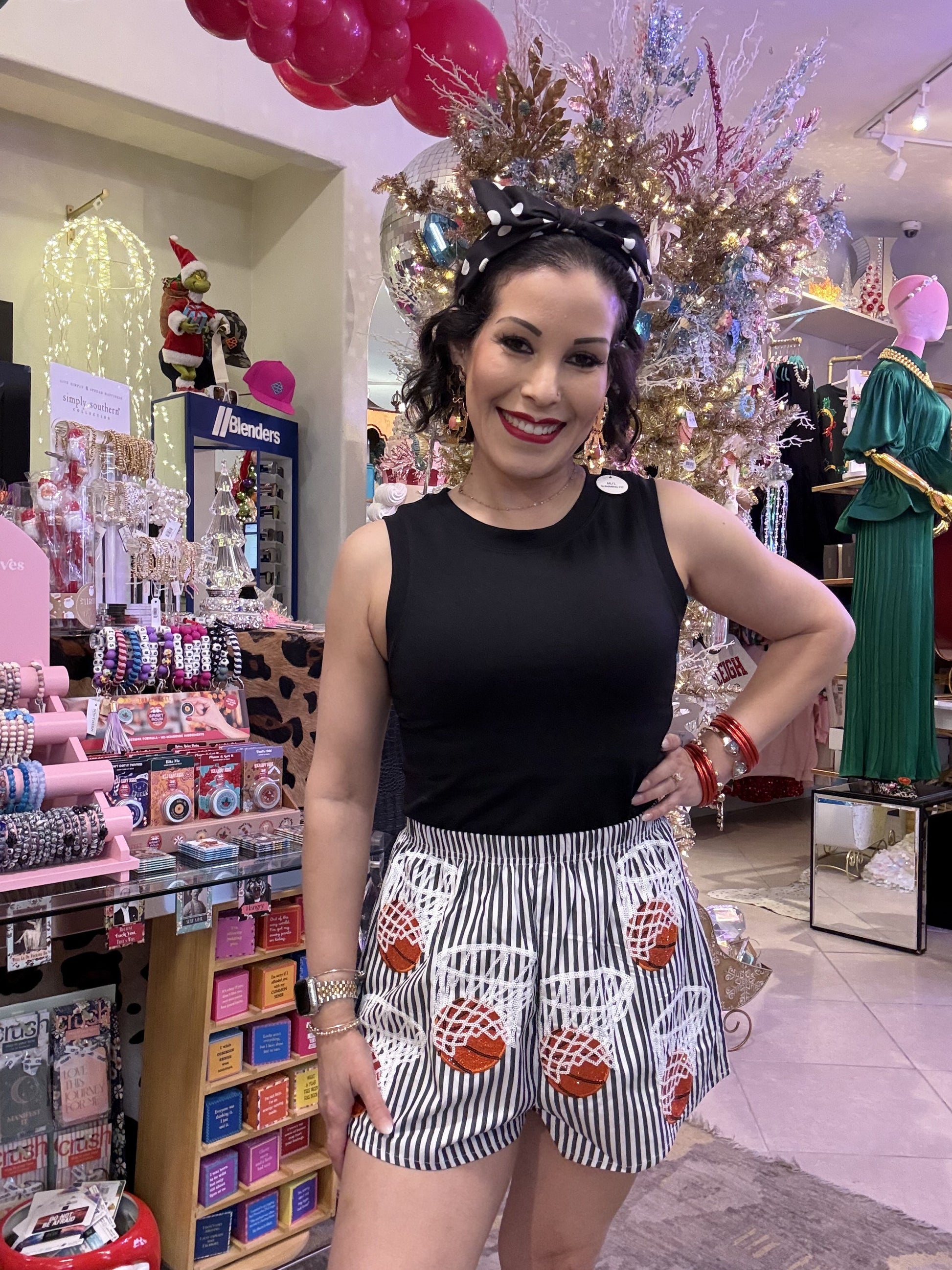 Get court-ready in these vibrant Queen of Sparkles basketball shorts featuring a striking black and white stripe design. Engineered for movement and comfort, these shorts let you play hard without sacrificing style. The bold striped pattern makes a confident statement while you're dominating the game. Whether you're hitting the court for serious competition or casual pickup games, these shorts deliver the perfect blend of athletic performance and eye-catching flair that'll have everyone noticing your moves. Model is wearing an XS