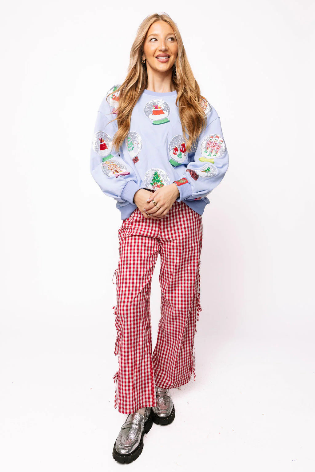 Queen of Sparkles Powder Blue Sequin Christmas Snow Globe Sweatshirt – Adult