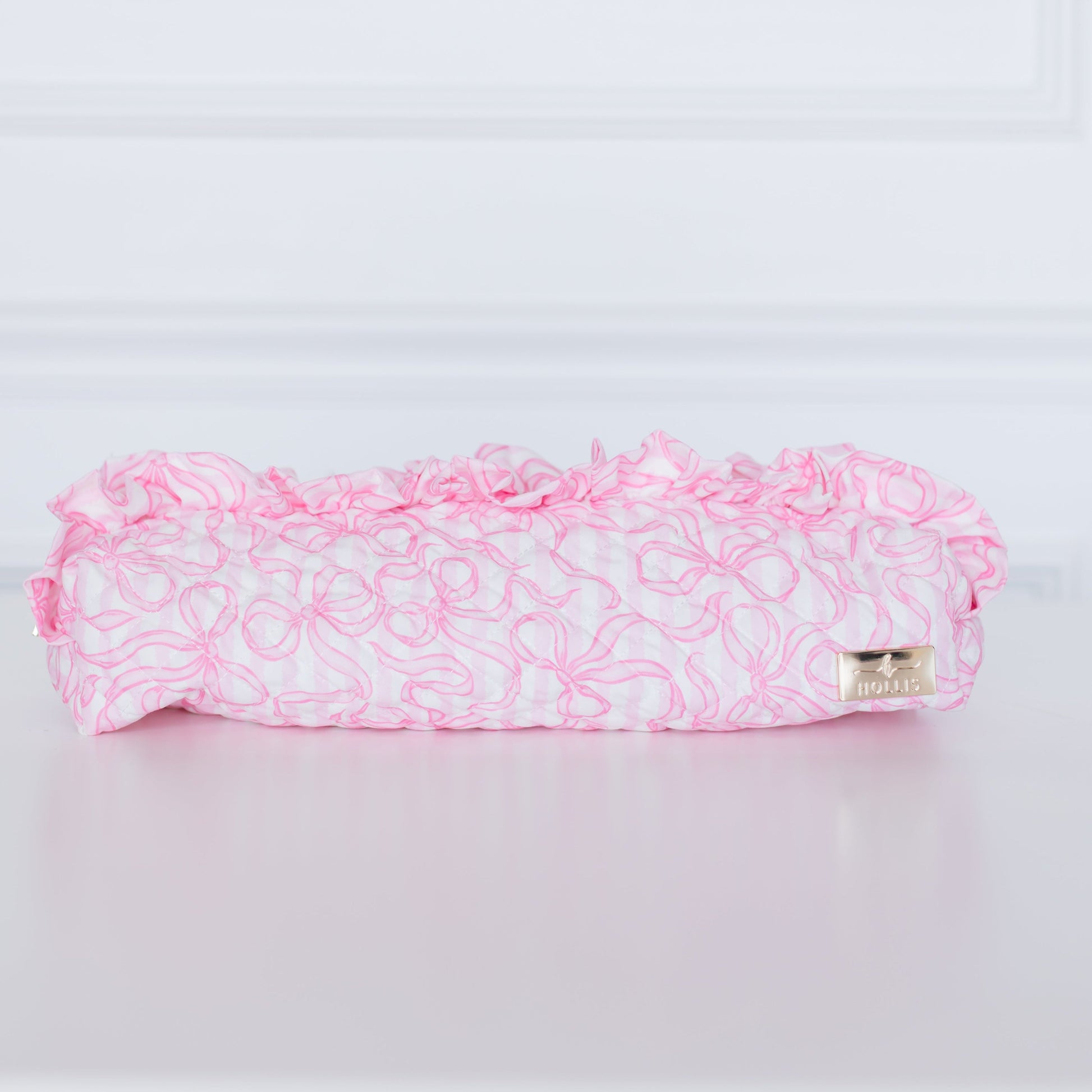 The Quilted Coquette Hot Tools Pouch keeps your hair tools protected — and finally makes them pretty. Designed in our signature pink bow print with full ruffle trim, this pouch brings coquette charm to even the most practical part of your beauty routine.