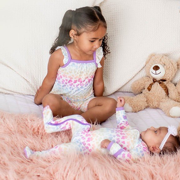 Keep your little snuggled up in our colorful rainbow leopard print footie! Made with super soft bamboo, this footie features flowers all over the print and a dual 2-way zipper for hassle-free diaper changes. Plus, keep little hands warm with fold over mittens on NB and 0/3m sizes, and foot grips on larger sizes. So soft and cozy, your baby will love it!