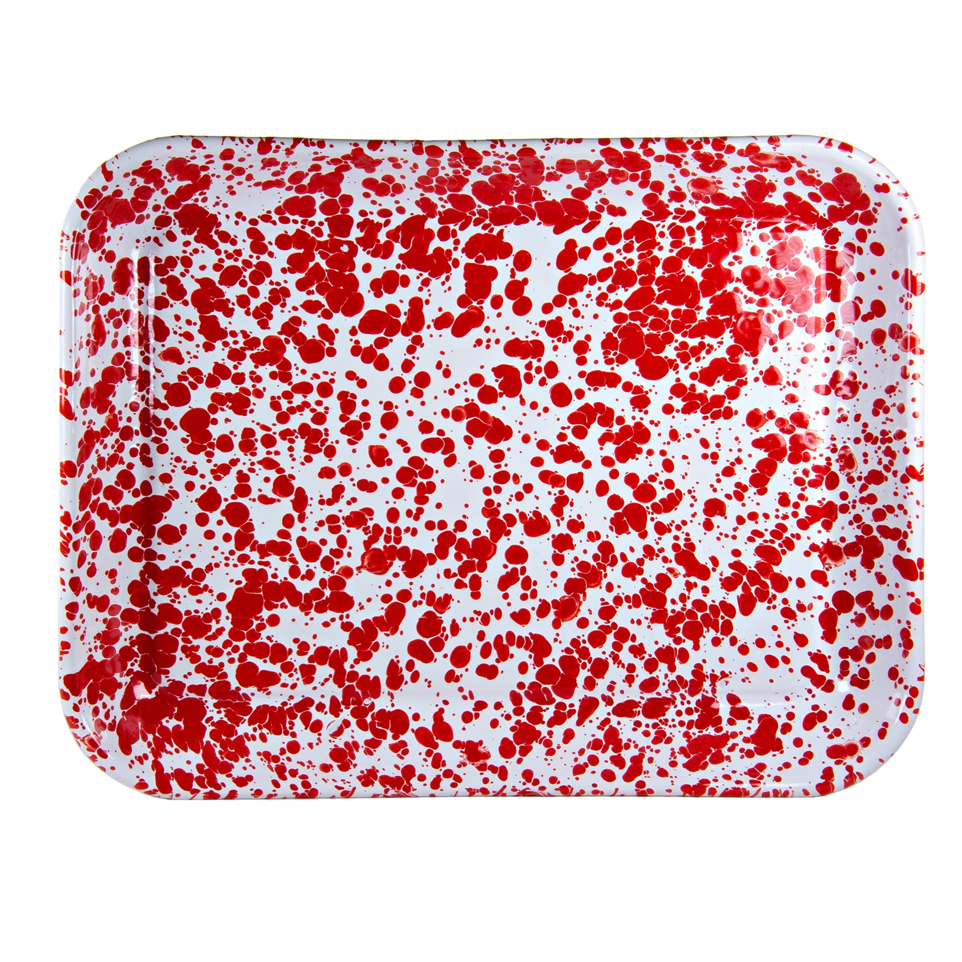 Infuse your kitchen with a pop of color using the Red Swirl Quarter Sheet Trays. The bold red swirls on these durable enamelware trays make them ideal for baking, serving, or organizing small items. Whether you're preparing a snack or displaying your favorite treats, this set of two trays brings both style and function to your kitchen.