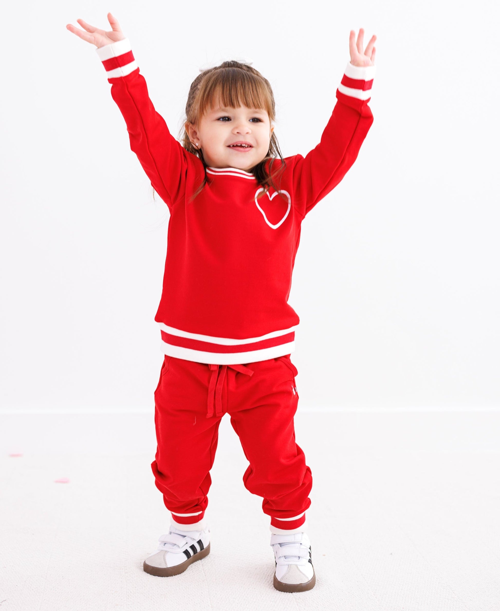 Wrap your little one in comfort and cuteness this Valentine’s Day and beyond with our matching jogger set, crafted from soft, durable bamboo terry. This two-piece set provides breathable warmth and a hint of stretch for unrestricted movement, making it perfect for everyday adventures or cozy downtime!