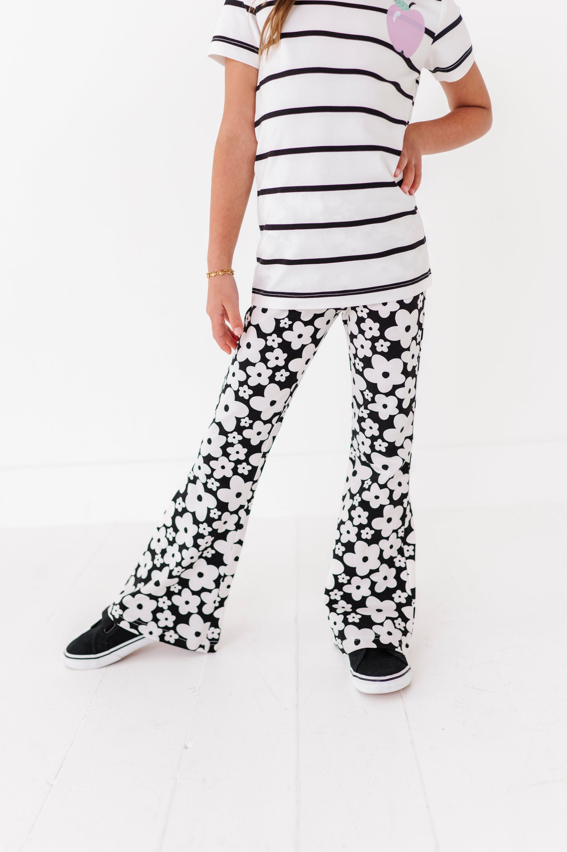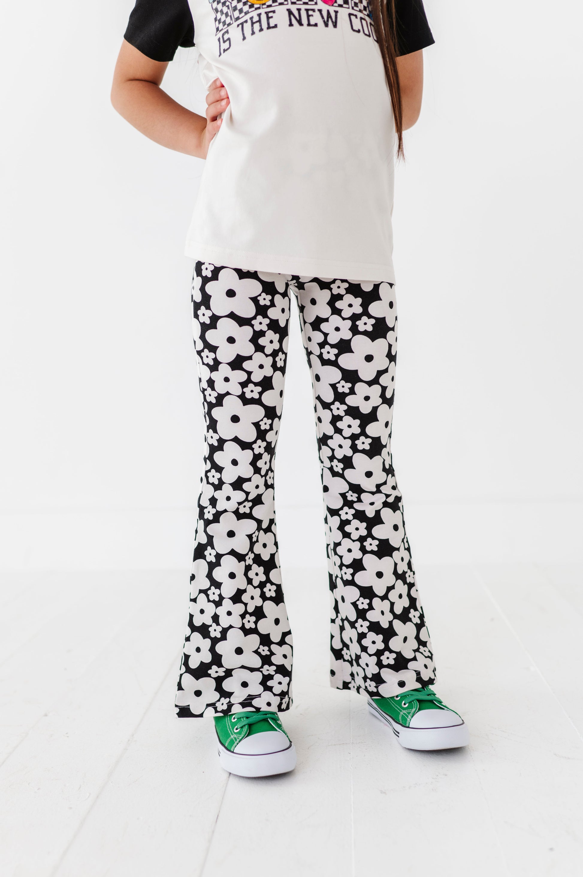 SIZING: Our customers typically find that this style runs TRUE TO SIZE and is intended to fit mid to high waisted with a snug fit in the waist and hips. WE CAUTION AGAINST SIZING UP IN THESE FLARES- THEY COULD BE TOO LONG IF YOU ARE SIZING UP FOR LONGER WEAR! All of our models in the listing pictures are wearing their true size (6T) and normally wear between 6/7 clothes.