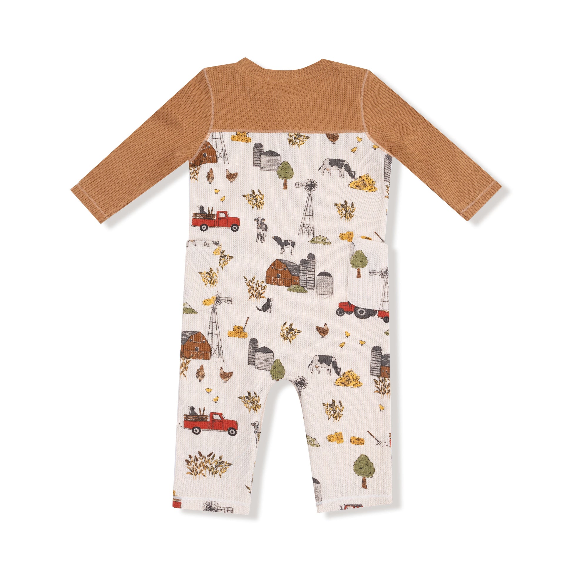 Warm and Whimsical: Waffle Romper with Contrast Sleeves