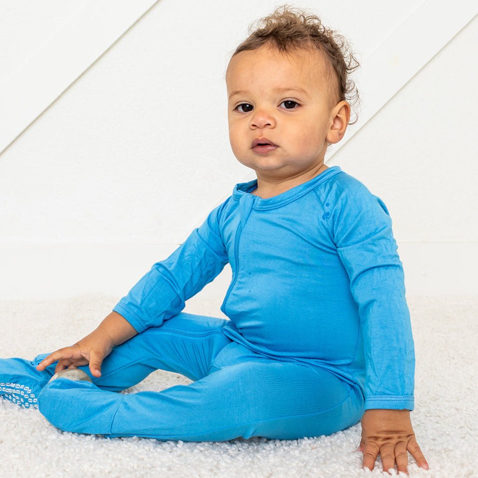 Keep your little one snuggled up in our royal blue footie! Made with super soft bamboo, this footie features a beautiful blue color and a dual 2-way zipper for hassle-free diaper changes. Plus, keep little hands warm with fold over mittens on NB and 0/3m sizes, and foot grips on larger sizes. So soft and cozy, your baby will love it!