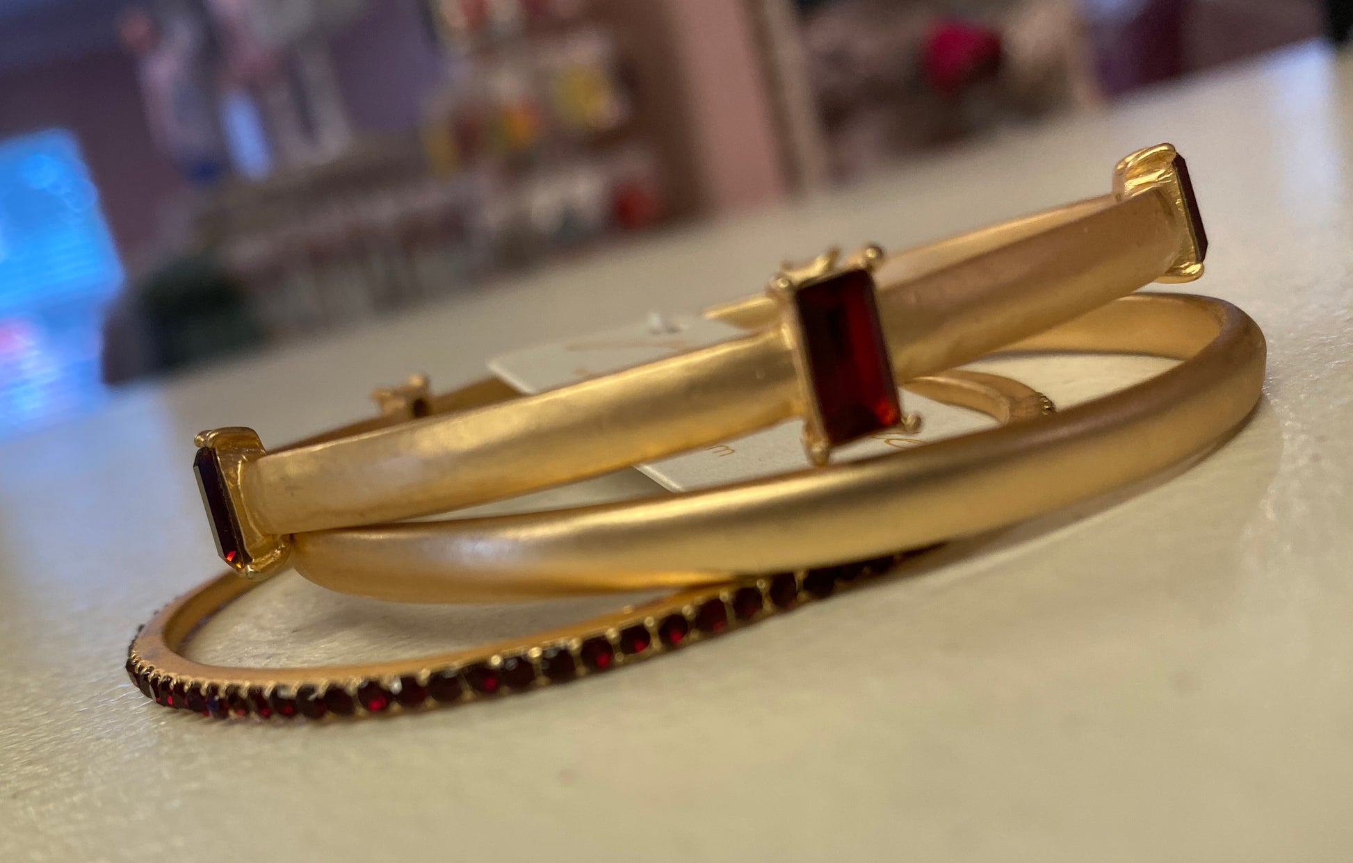 SET OF 3 RUBY CRYSTAL & GOLD BANGLE BRACELETS