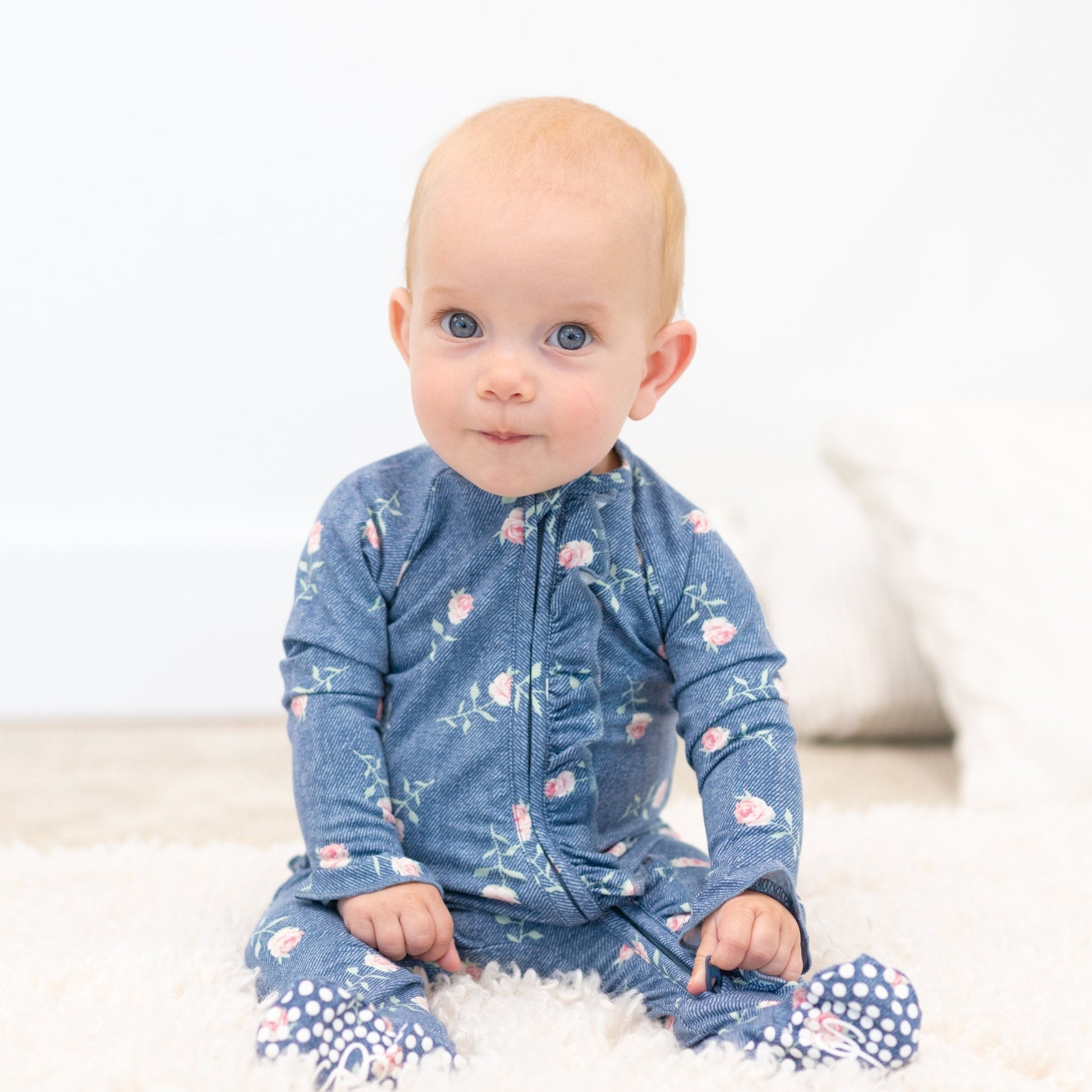 If you're a ruffle lover, this 2-way zipper footie will hit the spot! Made with our yummy, hypoallergenic, silky-smooth fabric and topped off with no-slip grips on the foot pads to ensure your little one stays stable as they grow.