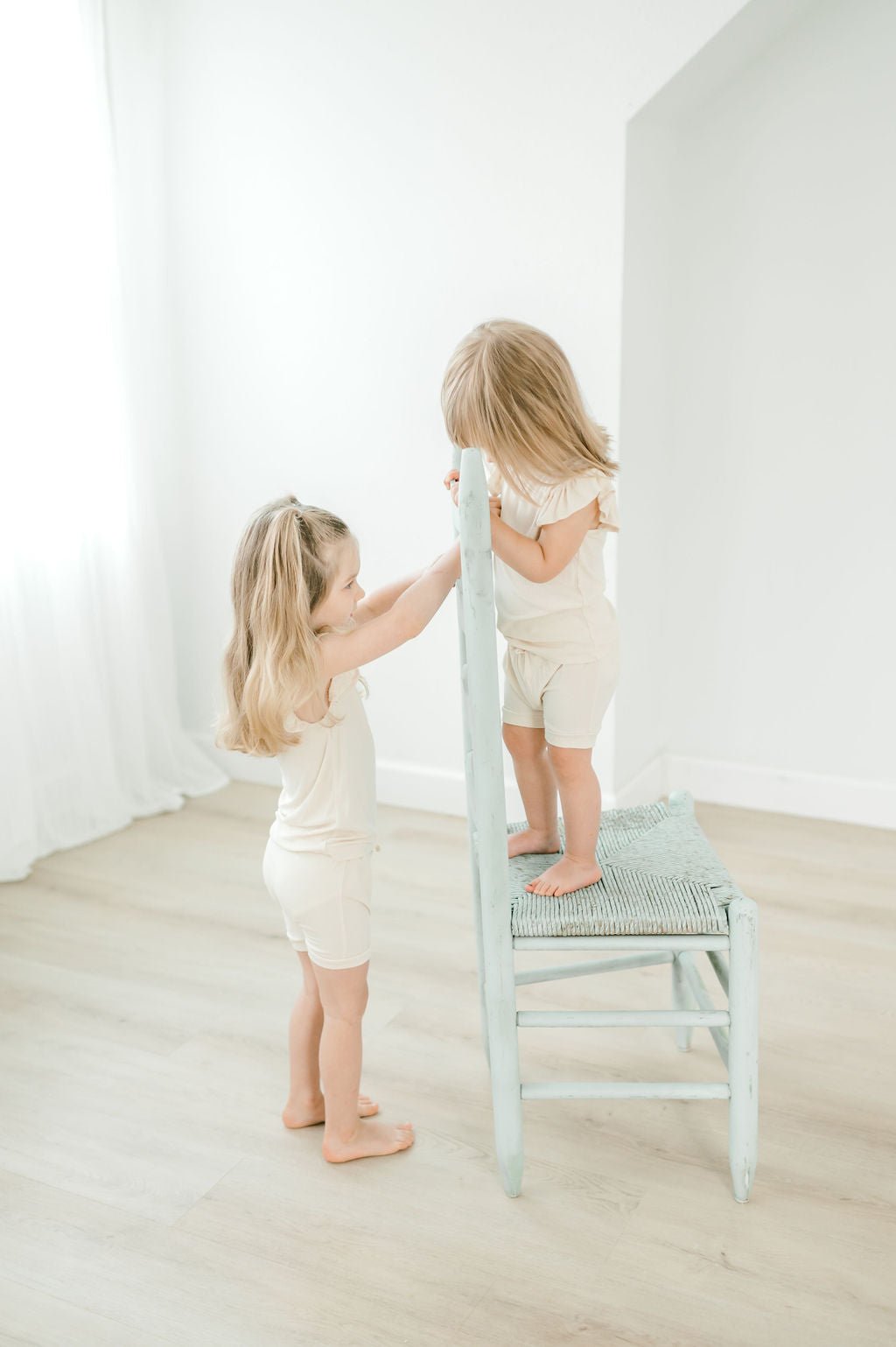Our ribbed short set is designed to be soft and lightweight with the perfect amount of stretch. Features a ruffle sleeve shirt and matching shorts.