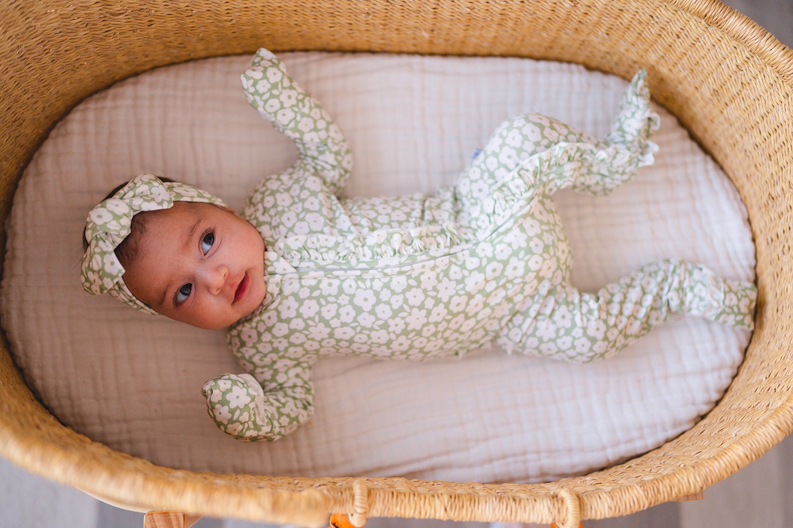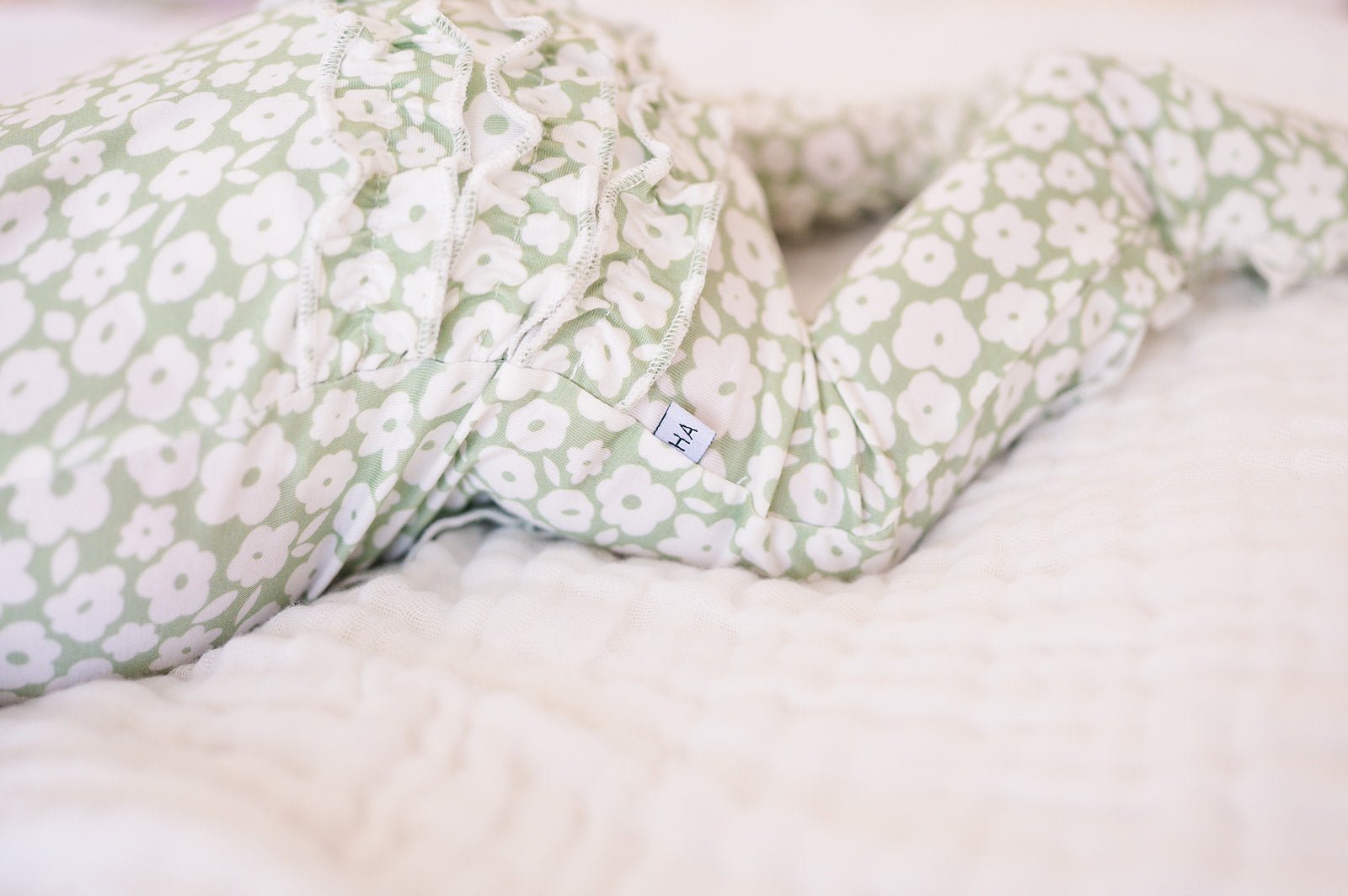 Baby pajamas in our soft viscose bamboo fabric. Featuring adorable ruffle details, fold-over hands and feet on all sizes, and a 2-way zipper closure. Keep your baby cozy and chic with this versatile choice.